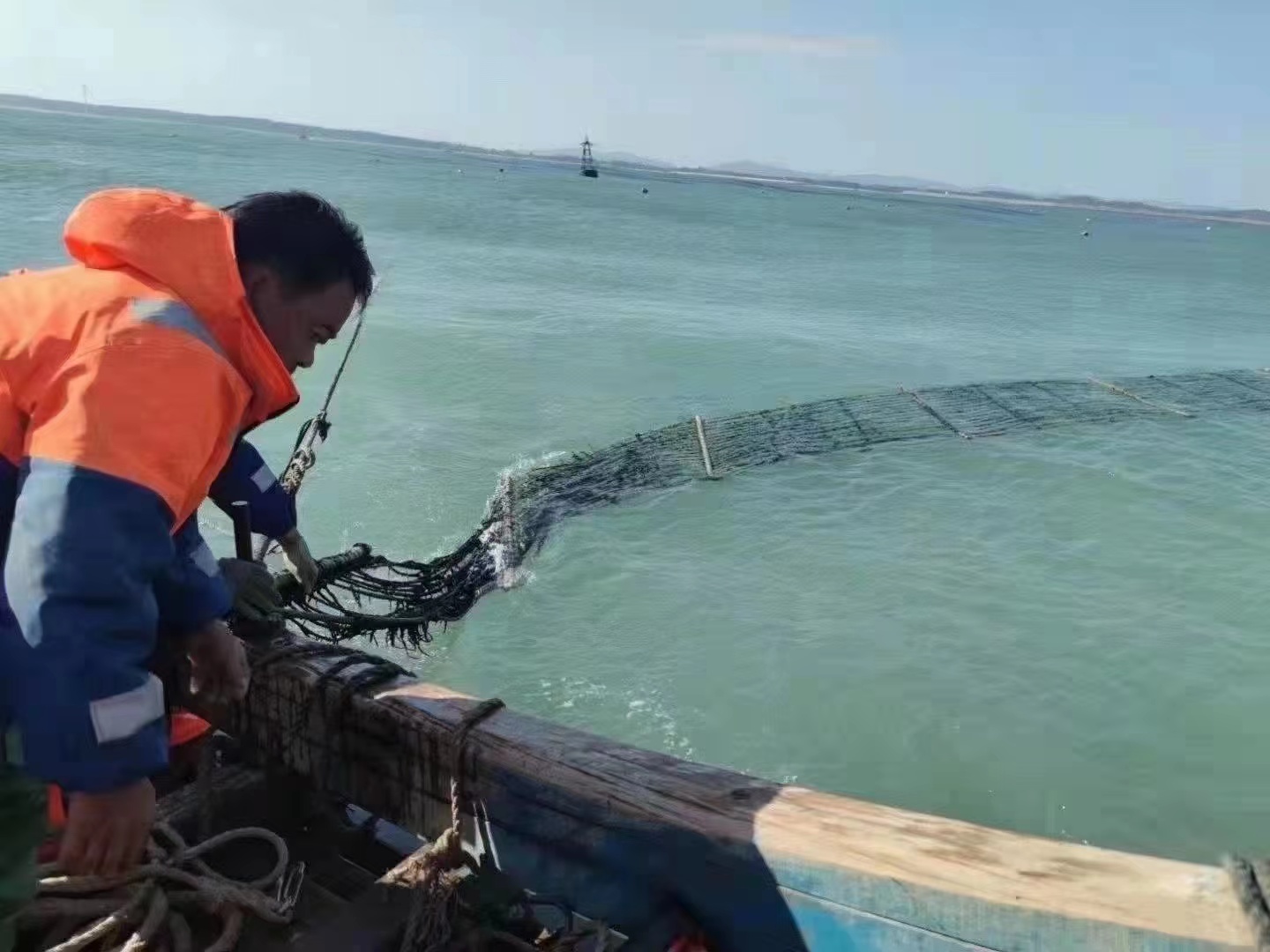在每年的农历八月份菜农会开始投放紫菜苗,把尼龙绳浸入含有紫菜苗的池子之中,经过搅拌,菌苗就会直接黏在绳子上。再将绳子放入海中,紫菜苗便能在海水中自然生长。