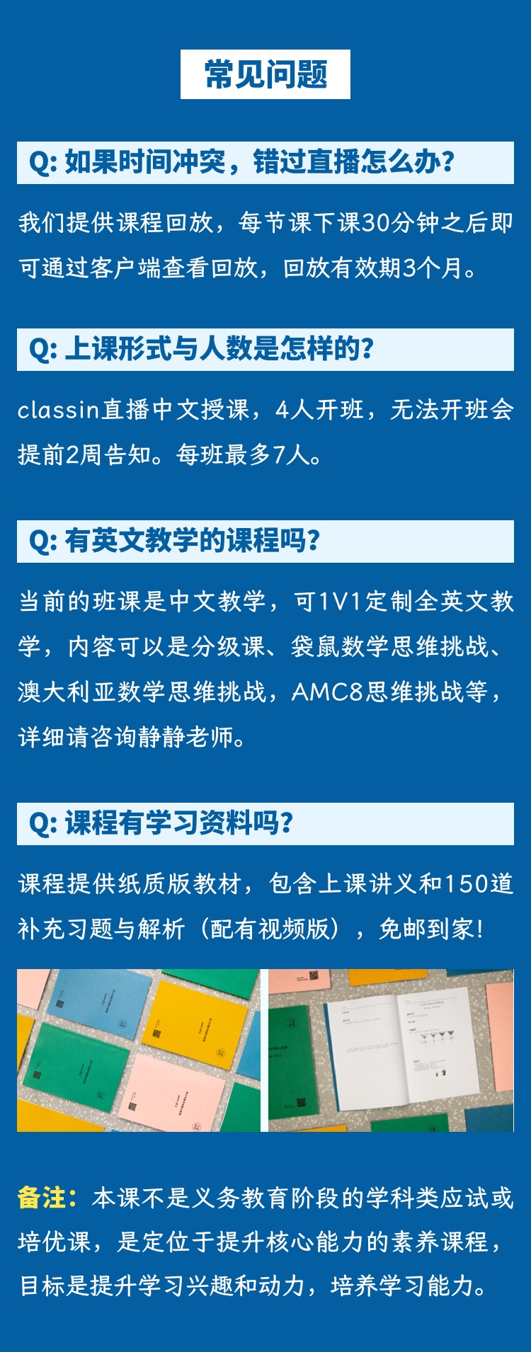 备注:本课程不是义务教育阶段的学科类应试或培优课程,该学术挑战活动不与任何中国的大学、中学或小学加分活动挂钩,课程仅定位于核心能力和学习兴趣的培养。