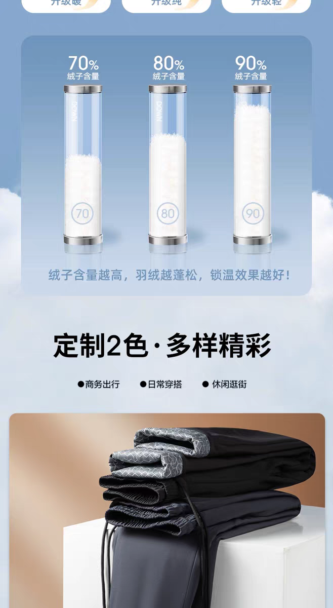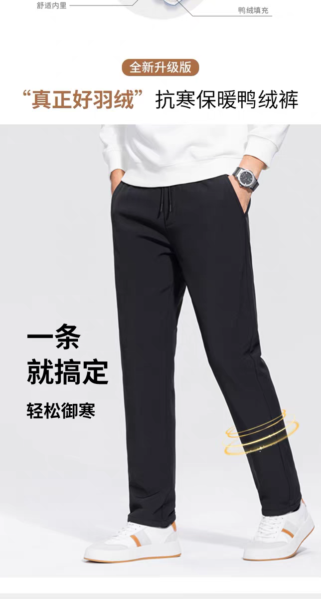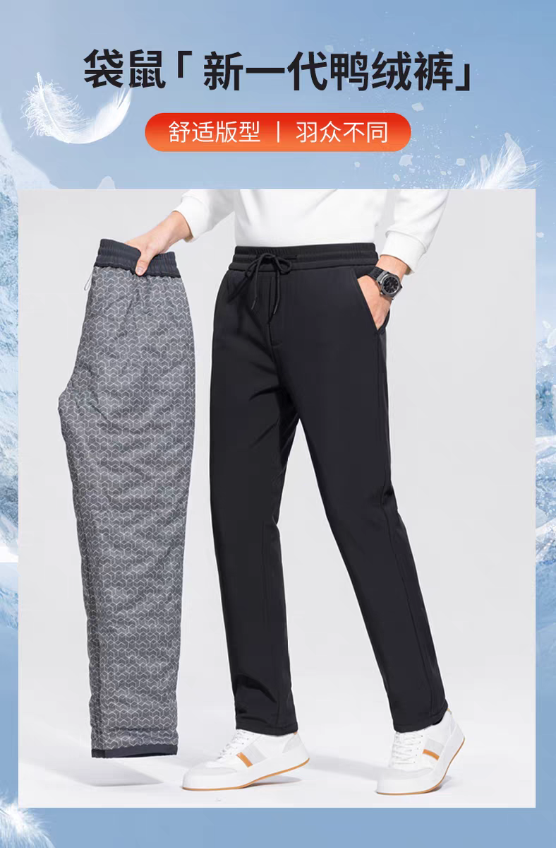 【官旗同款在售 饱满蓬松 90%鸭绒填充】袋鼠男士休闲百搭直筒羽绒裤