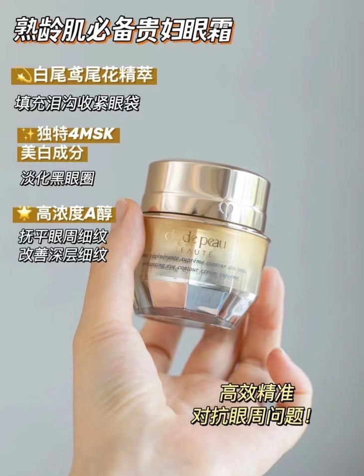 👑CDP紧致抚纹4D眼霜 15ml 👍贵妇眼霜又名“4D精雕眼霜”👁️,成分简直开挂🌪️!! ✨核心:白色鸢尾花精华,这种植物非常珍贵✨,给眼周补充胶原蛋白🧬,抚平泪沟👁️ 🙌🏻肌醇的加持,提拉紧致✔️,眼角上扬👀;加上精纯A醇,皱纹的克星⭐! 👏🏻还有独特的4MSK美白成分🥛,淡化暗沉,提亮眼周👁️ 🥛奶膏般质地,推开瞬间就被吸收👏🏻,润而不腻🌸,有了它,就不用去美容院了🙅🏻♀️!