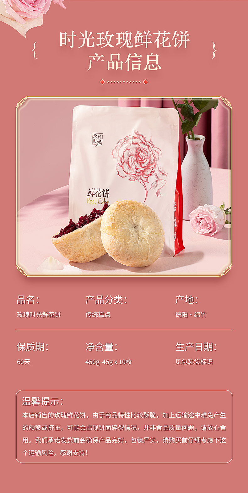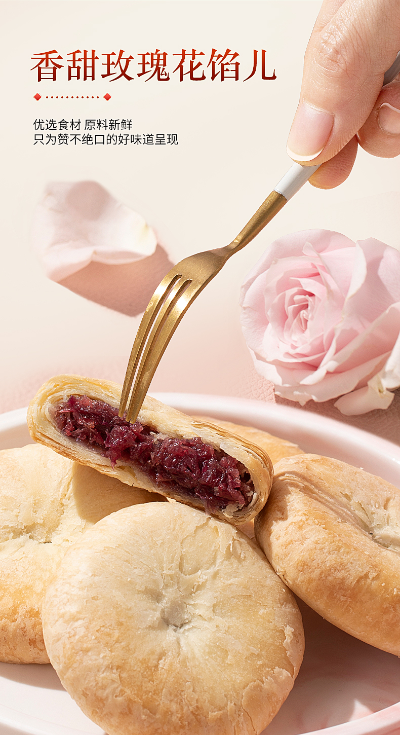 中国玫瑰谷 新品鲜花饼 三朵鲜花一块饼 10个/袋 共450g