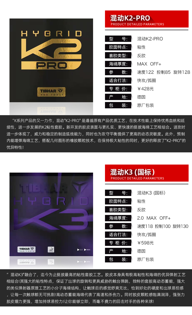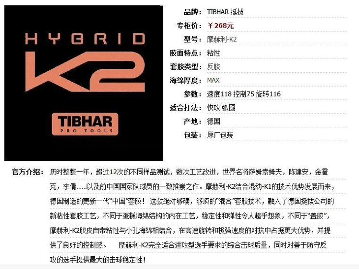 Tibhar挺拔摩赫丽 K2 Pro粘性反胶套胶