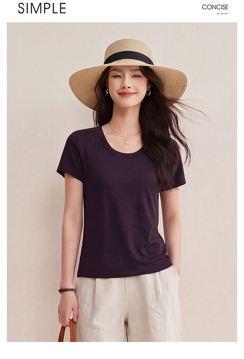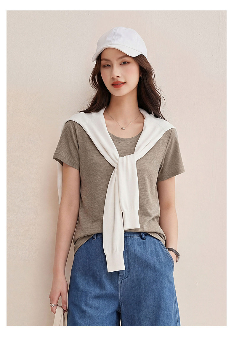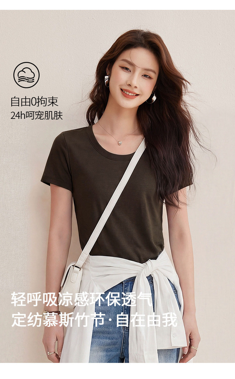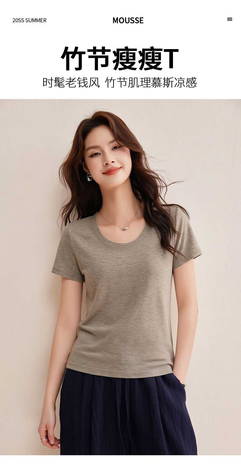 「自j」全新升级【铂金会员119/天猫159/差价40】(02442)洛诗琳慕斯竹节凉感T恤2026夏季新款亲肤显瘦U领短袖上衣