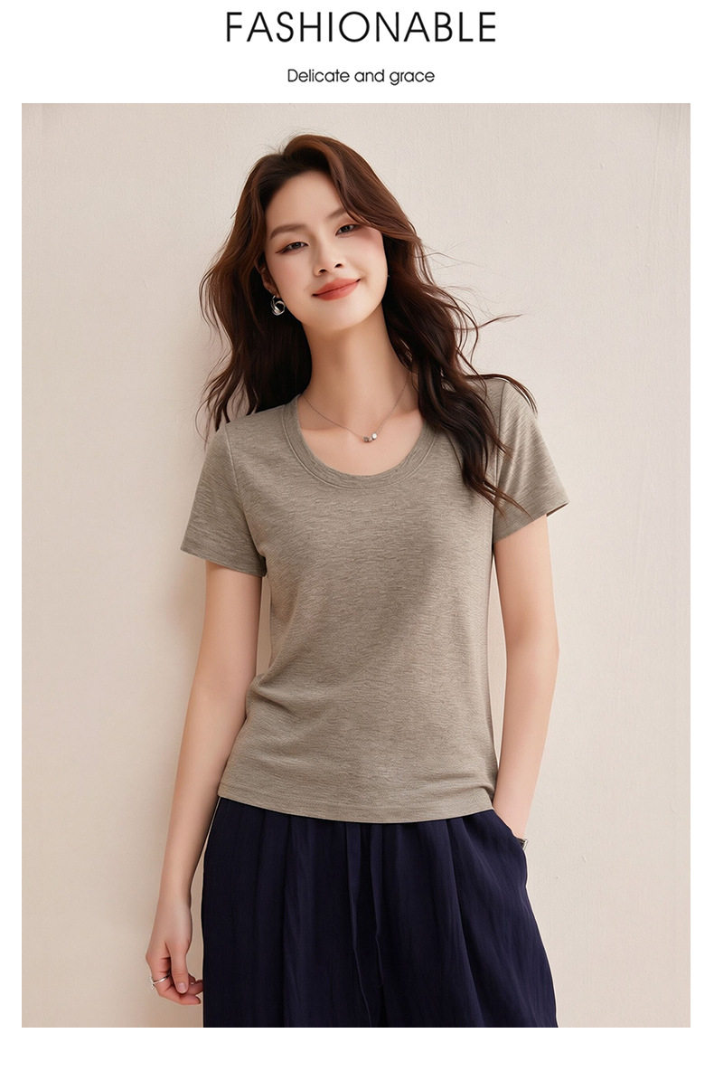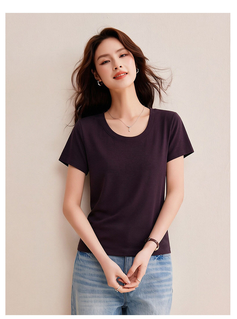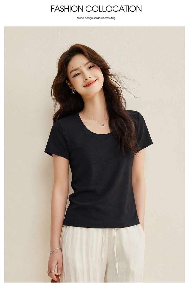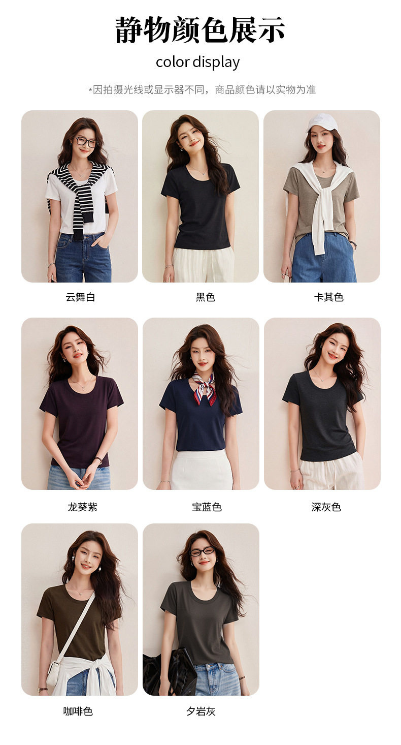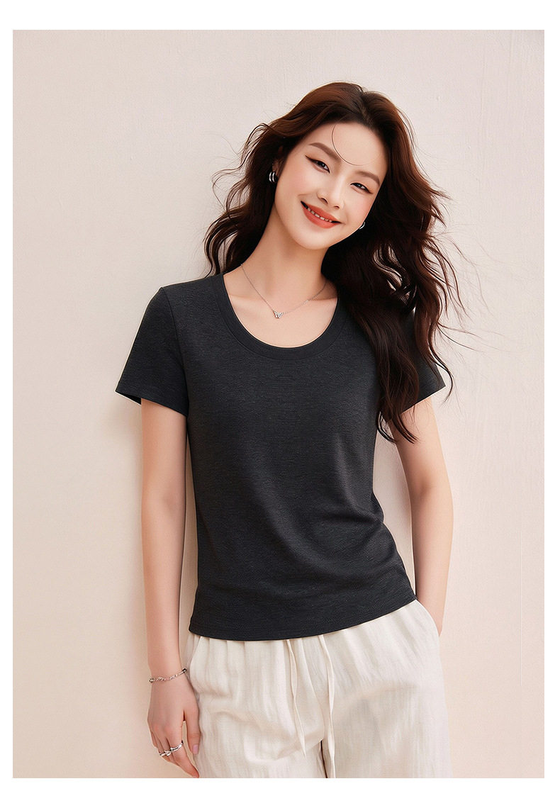 「自j」全新升级【铂金会员119/天猫159/差价40】(02442)洛诗琳慕斯竹节凉感T恤2026夏季新款亲肤显瘦U领短袖上衣