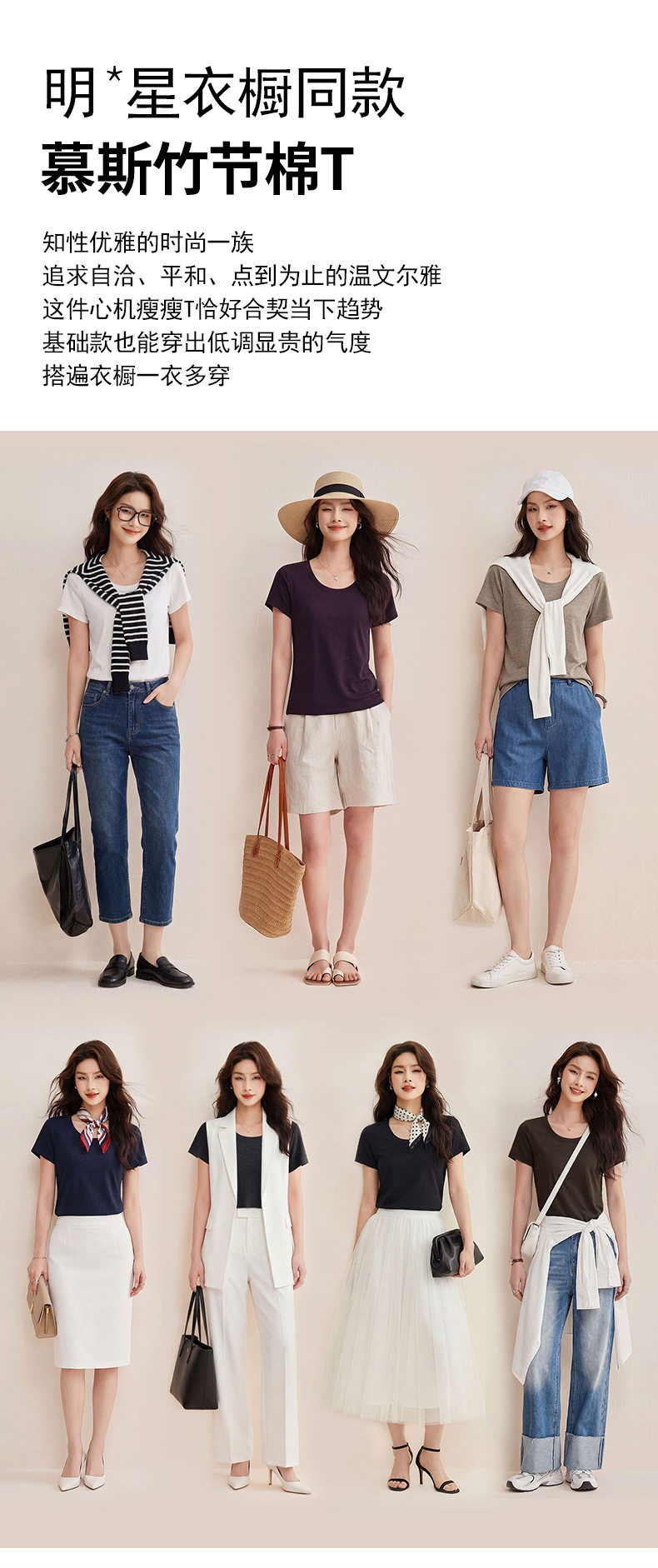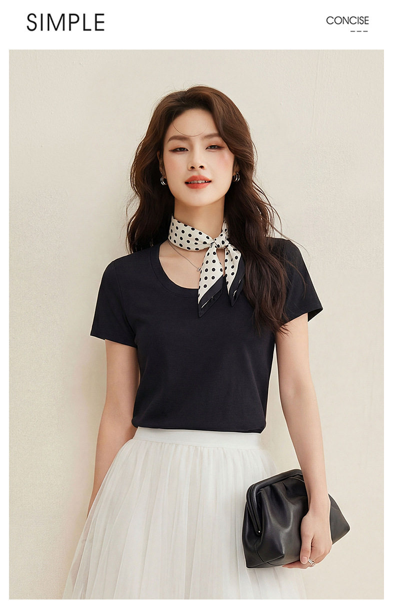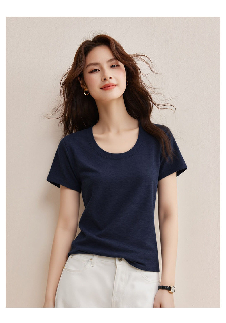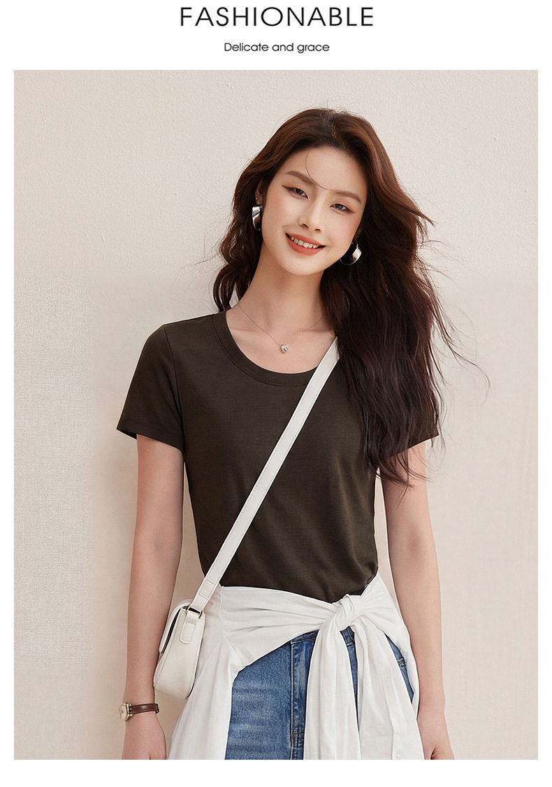 「自j」全新升级【铂金会员119/天猫159/差价40】(02442)洛诗琳慕斯竹节凉感T恤2026夏季新款亲肤显瘦U领短袖上衣
