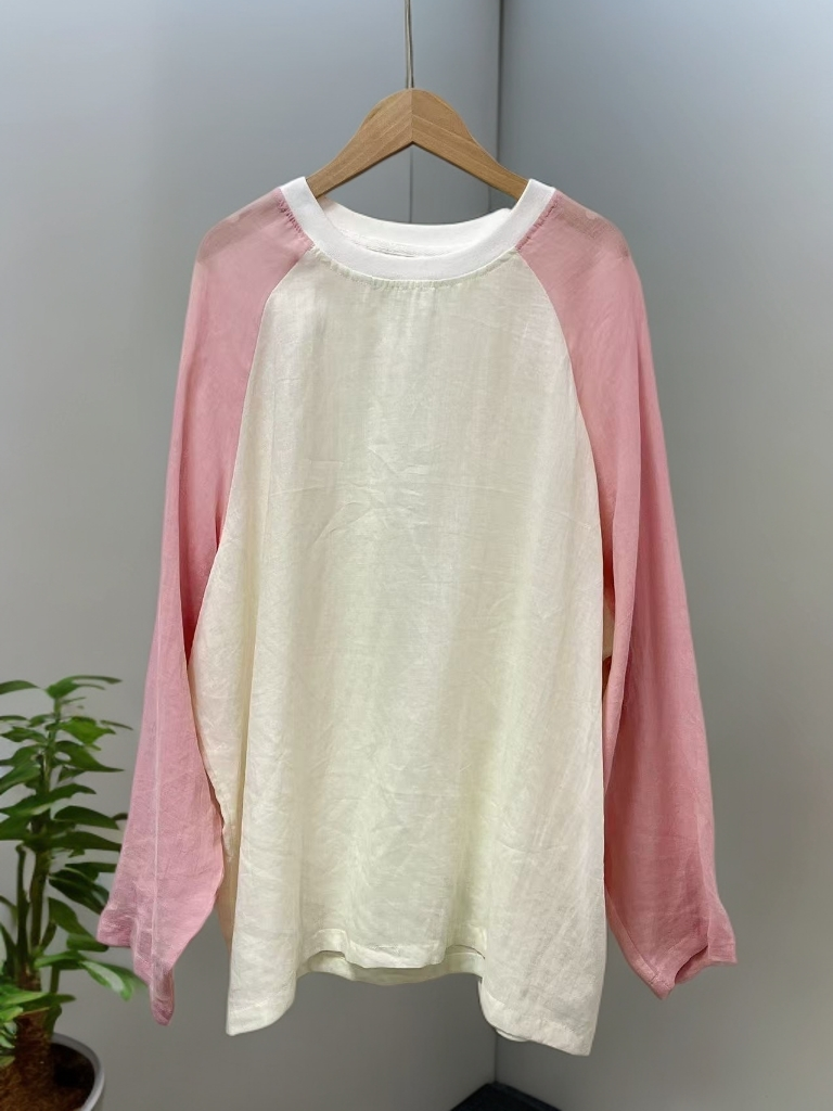 今日推荐-(微瑕)设计师插肩袖亚麻长袖T恤-喜出