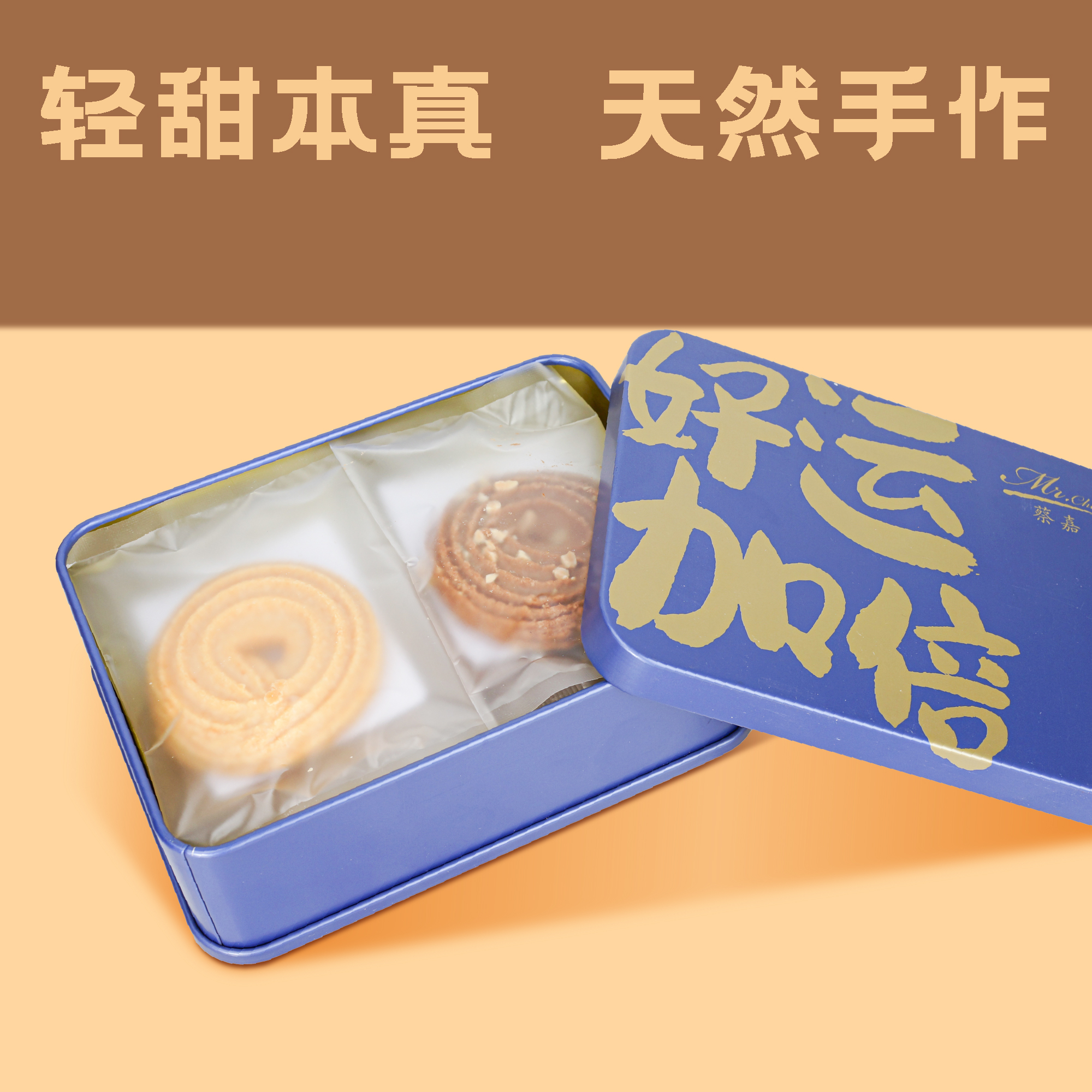 产品内含圈圈黄油曲奇3片、可可巴旦木粒曲奇3片