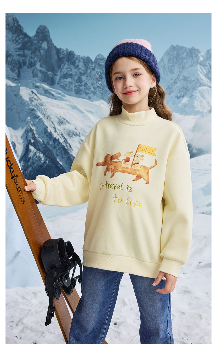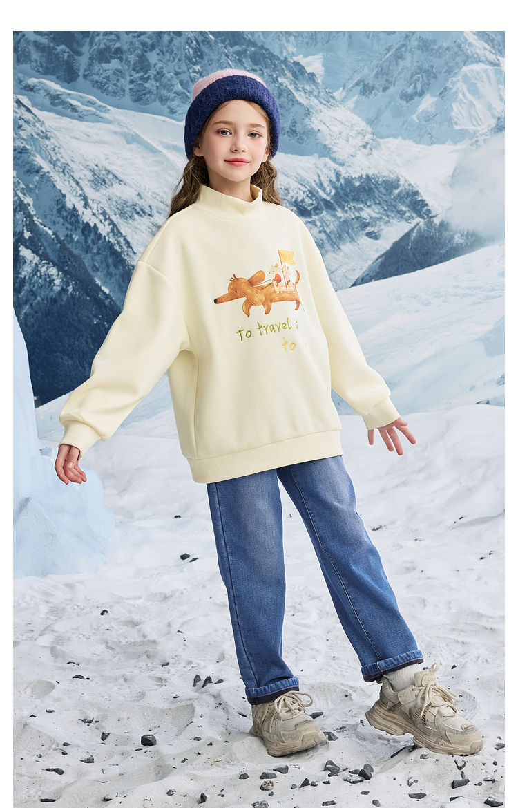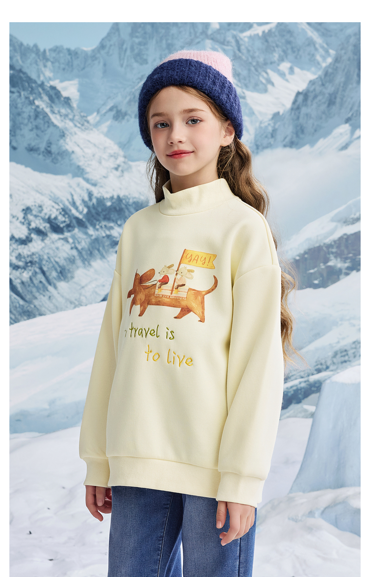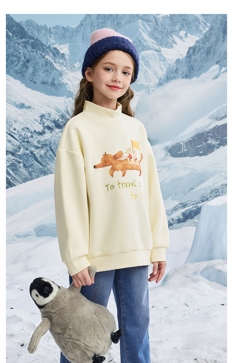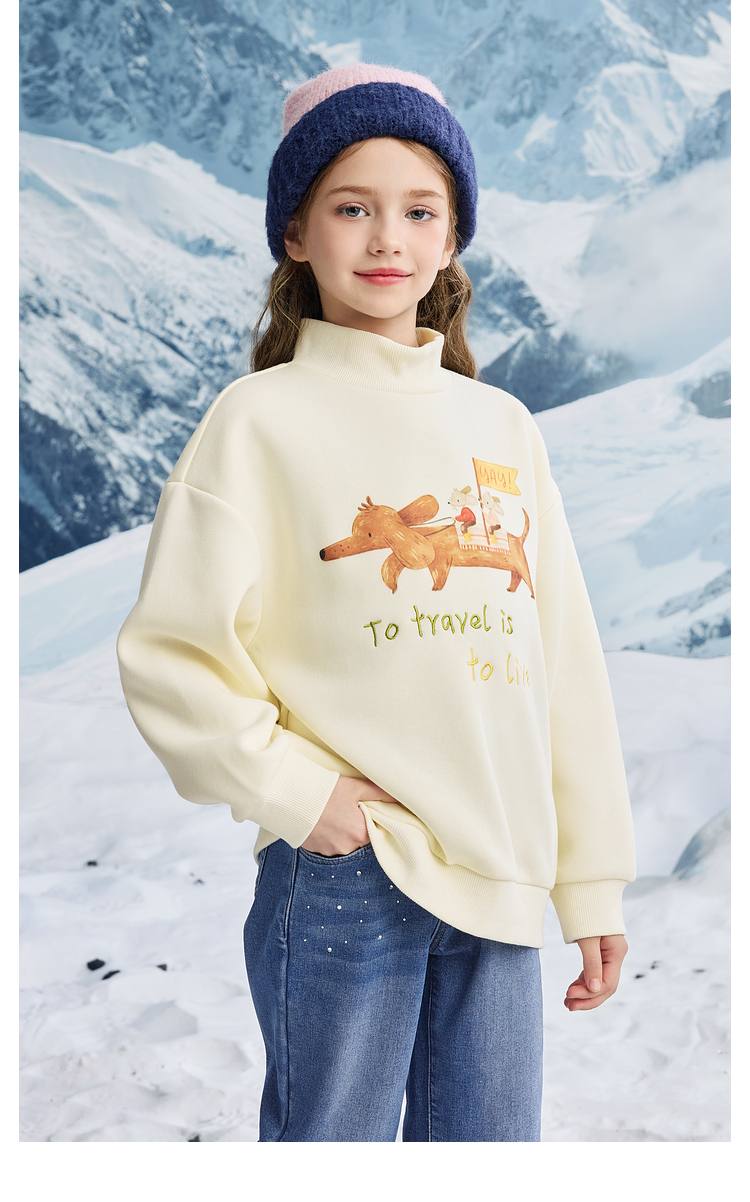 【MQD】女大童冬季新品学院风潮酷休闲卡通甜美加绒半高领卫衣