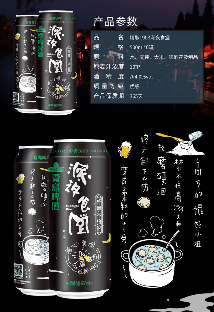 青岛啤酒经典(1903)深夜食堂10度500ml*6罐/箱 商品图2