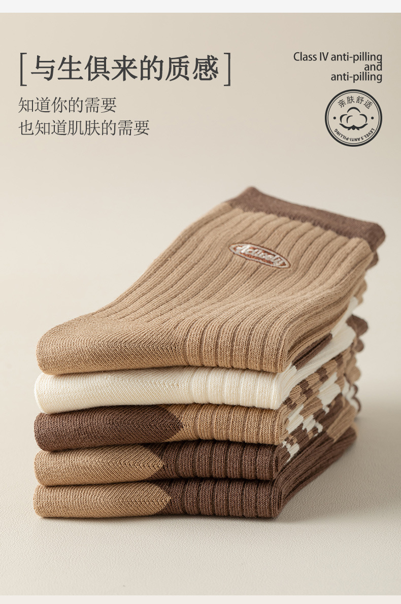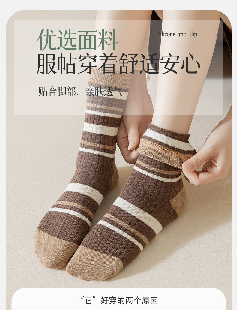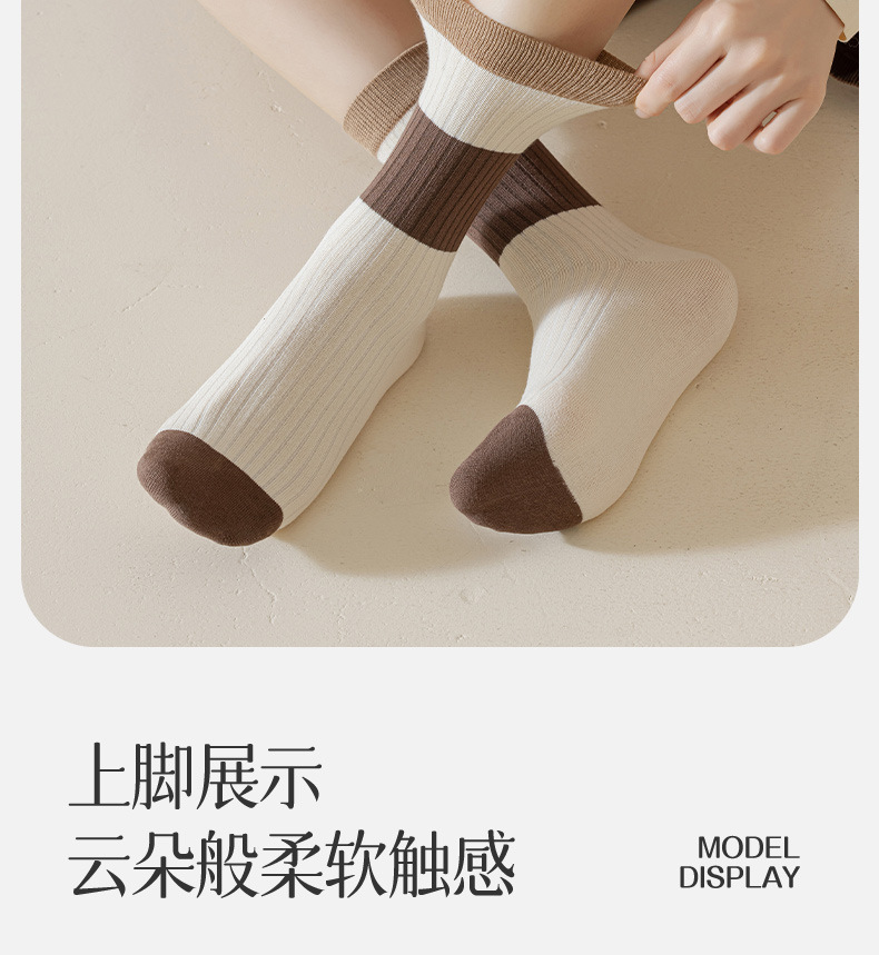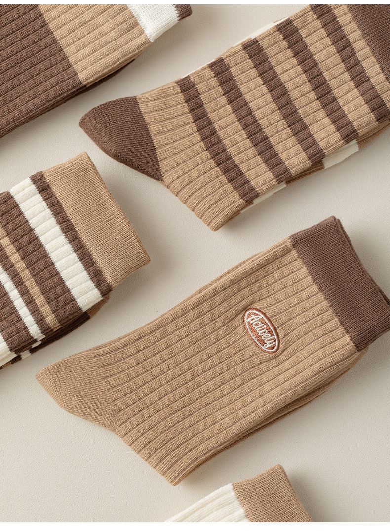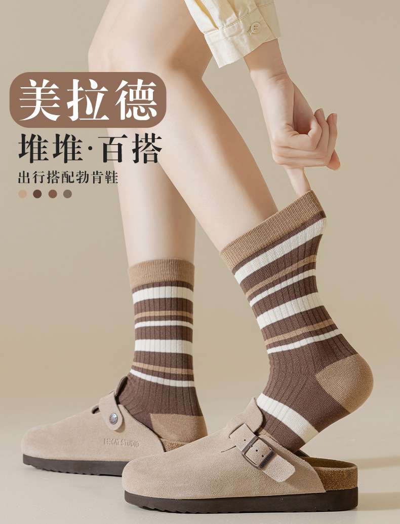 雀说10双装女袜美拉德秋冬中筒袜潮网红款堆堆袜森系条纹咖色长筒袜潮搭AL