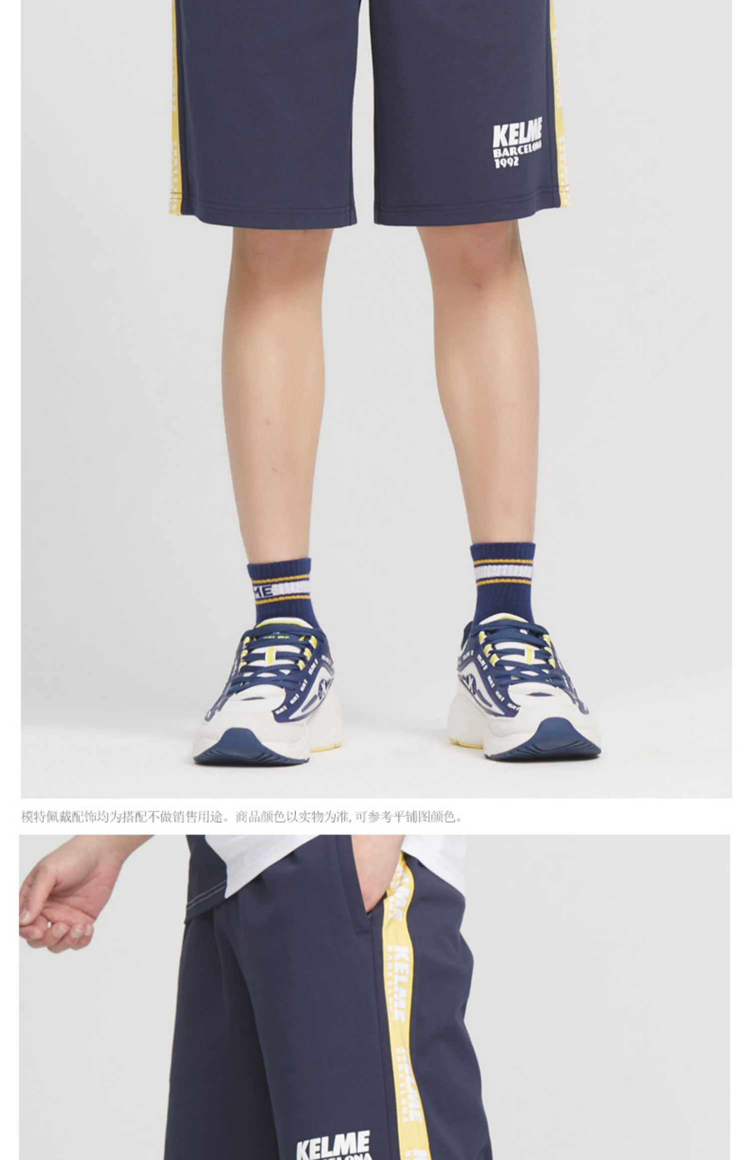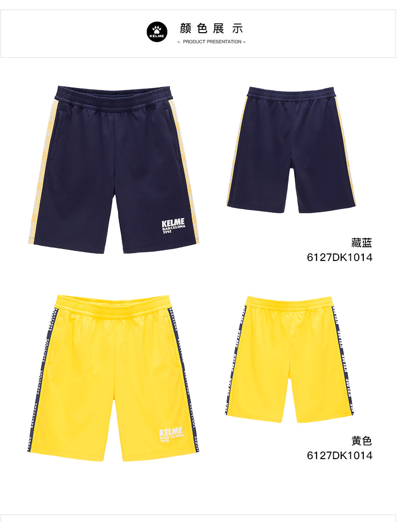KELME卡尔美运动休闲短裤夏季新款针织男士拼接棉吸汗透气五分裤