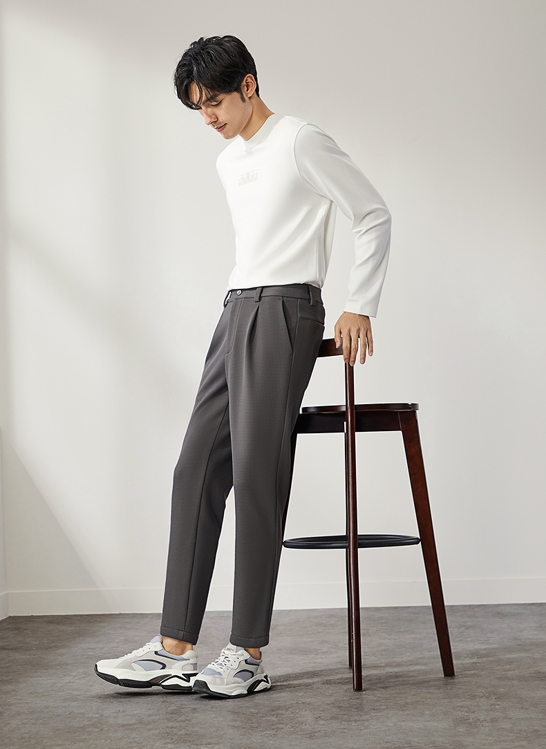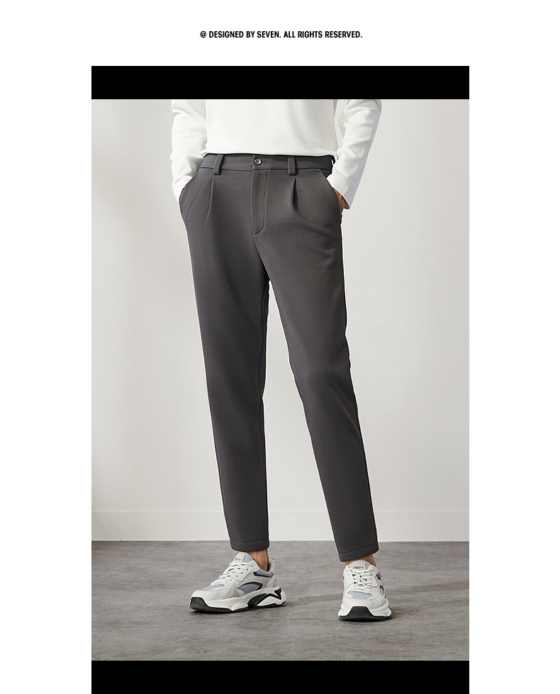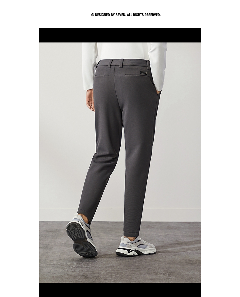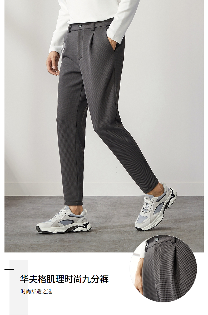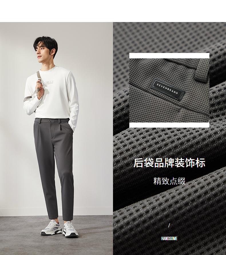 柒牌男士华夫格休闲裤秋季新款时尚青年锥形裤灰色百搭九分萝卜裤 127H72750