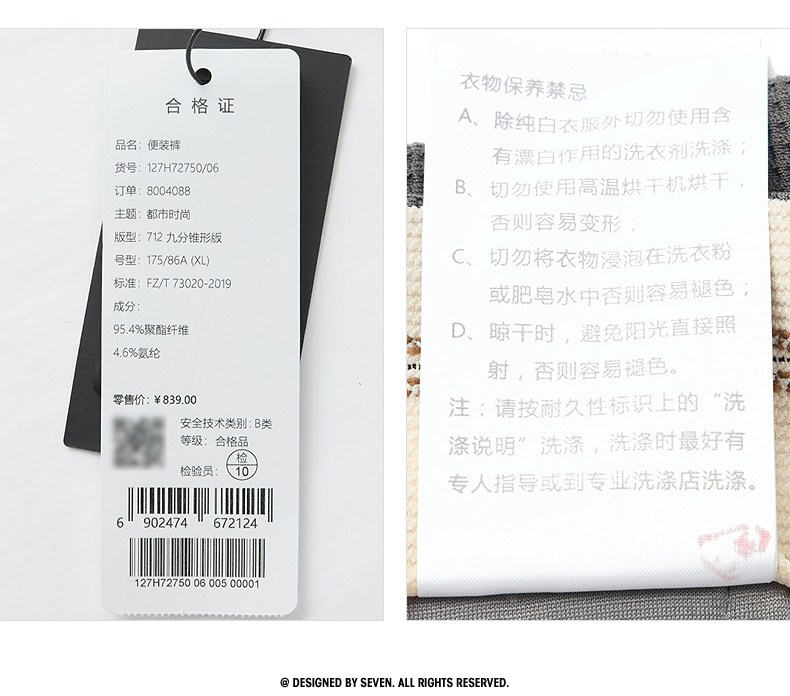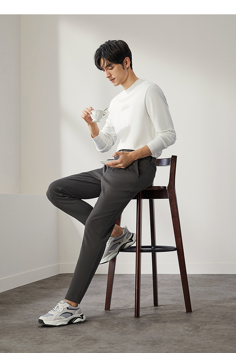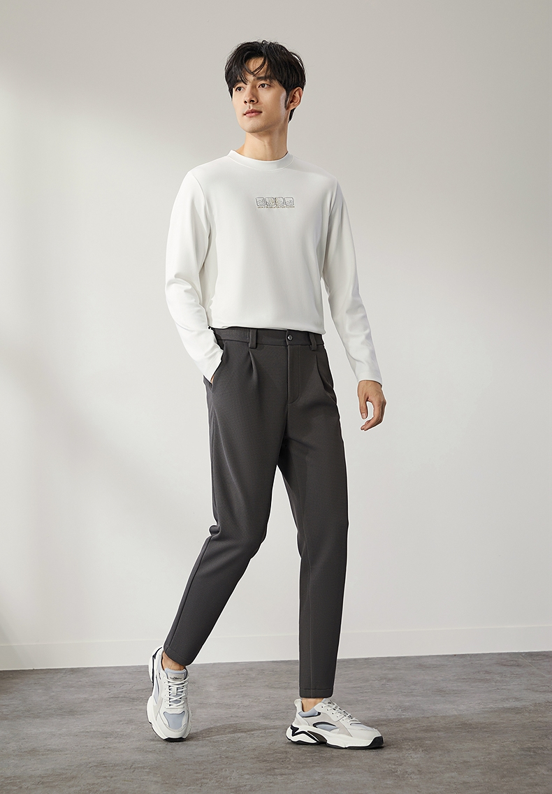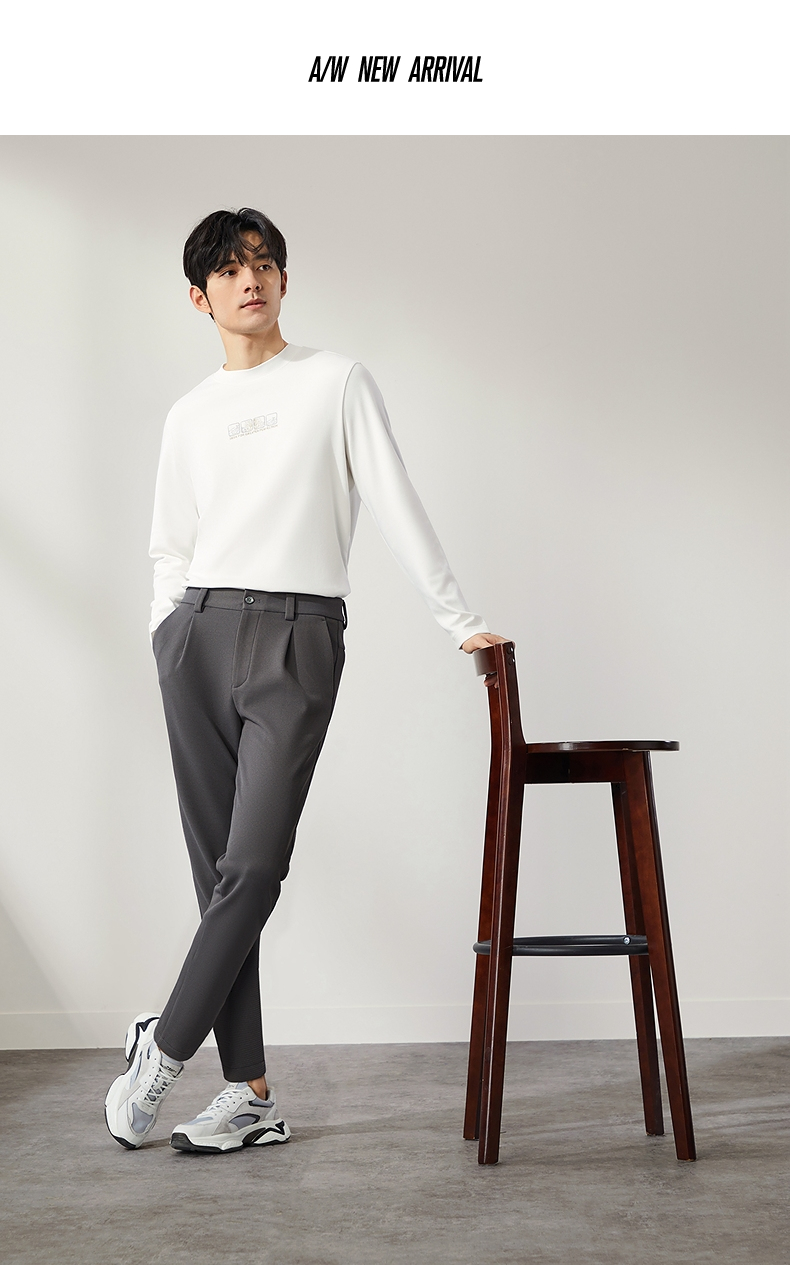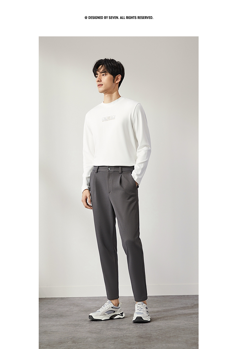 柒牌男士华夫格休闲裤秋季新款时尚青年锥形裤灰色百搭九分萝卜裤 127H72750