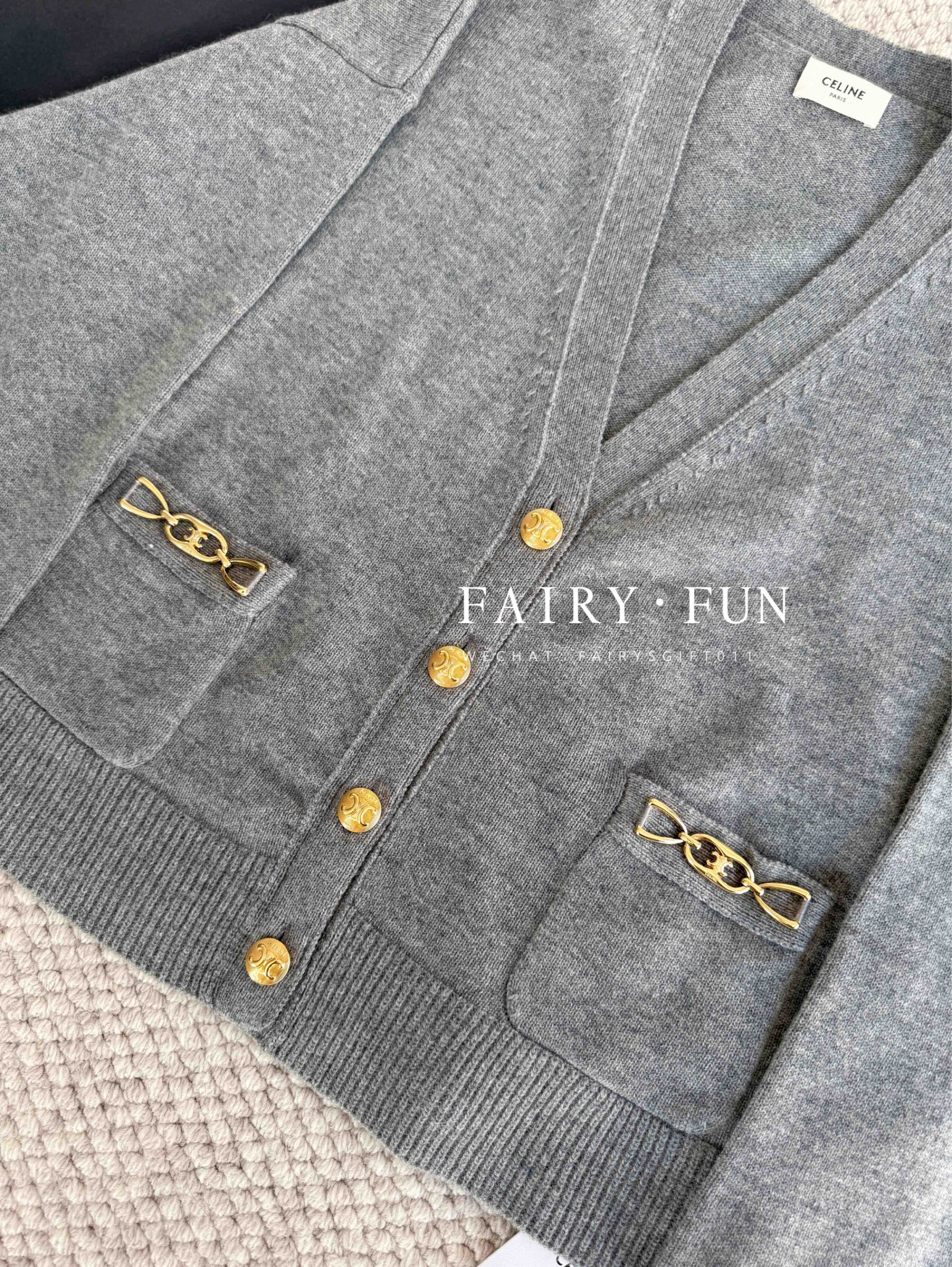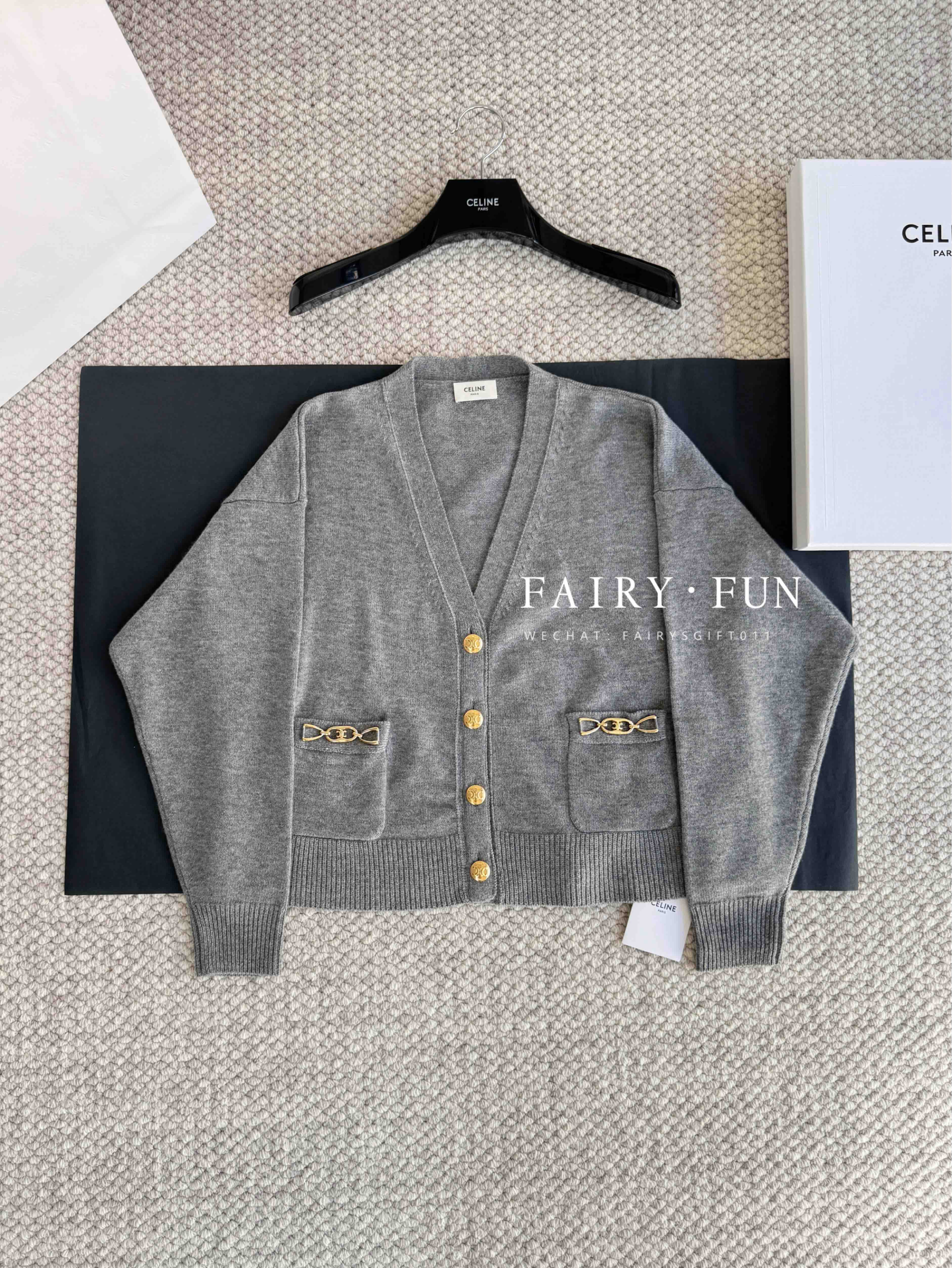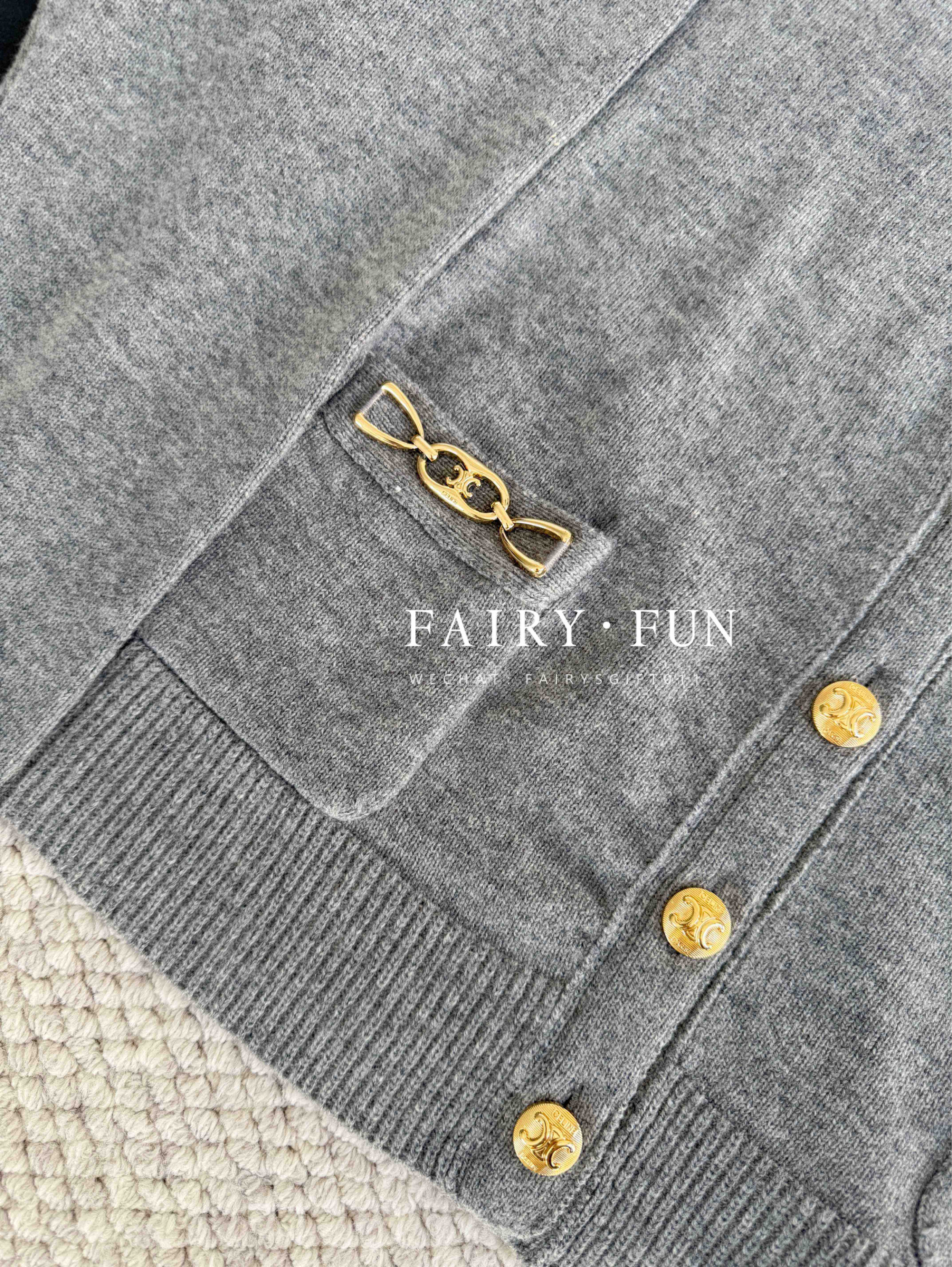 CE-S 链条羊绒灰开衫
