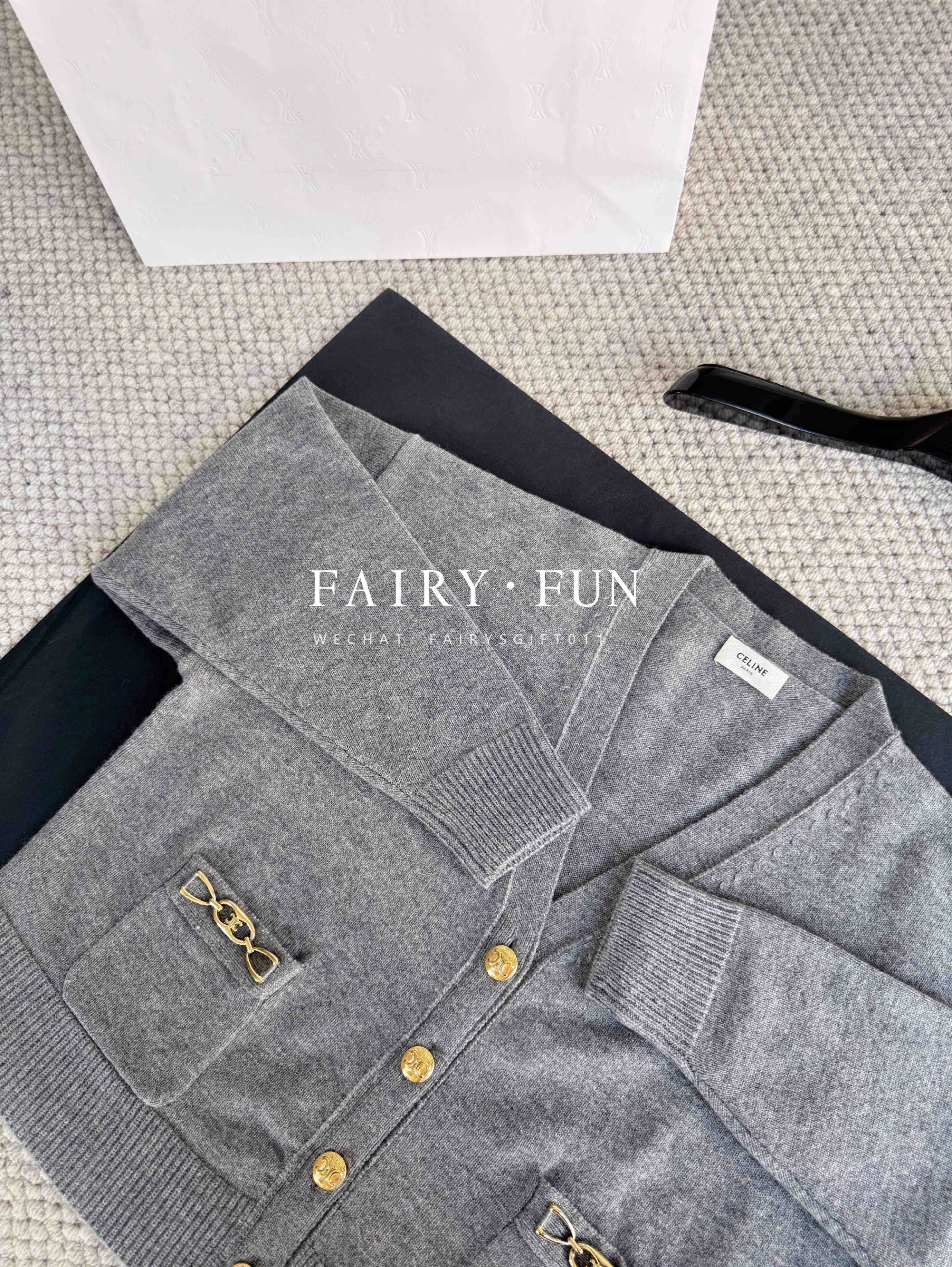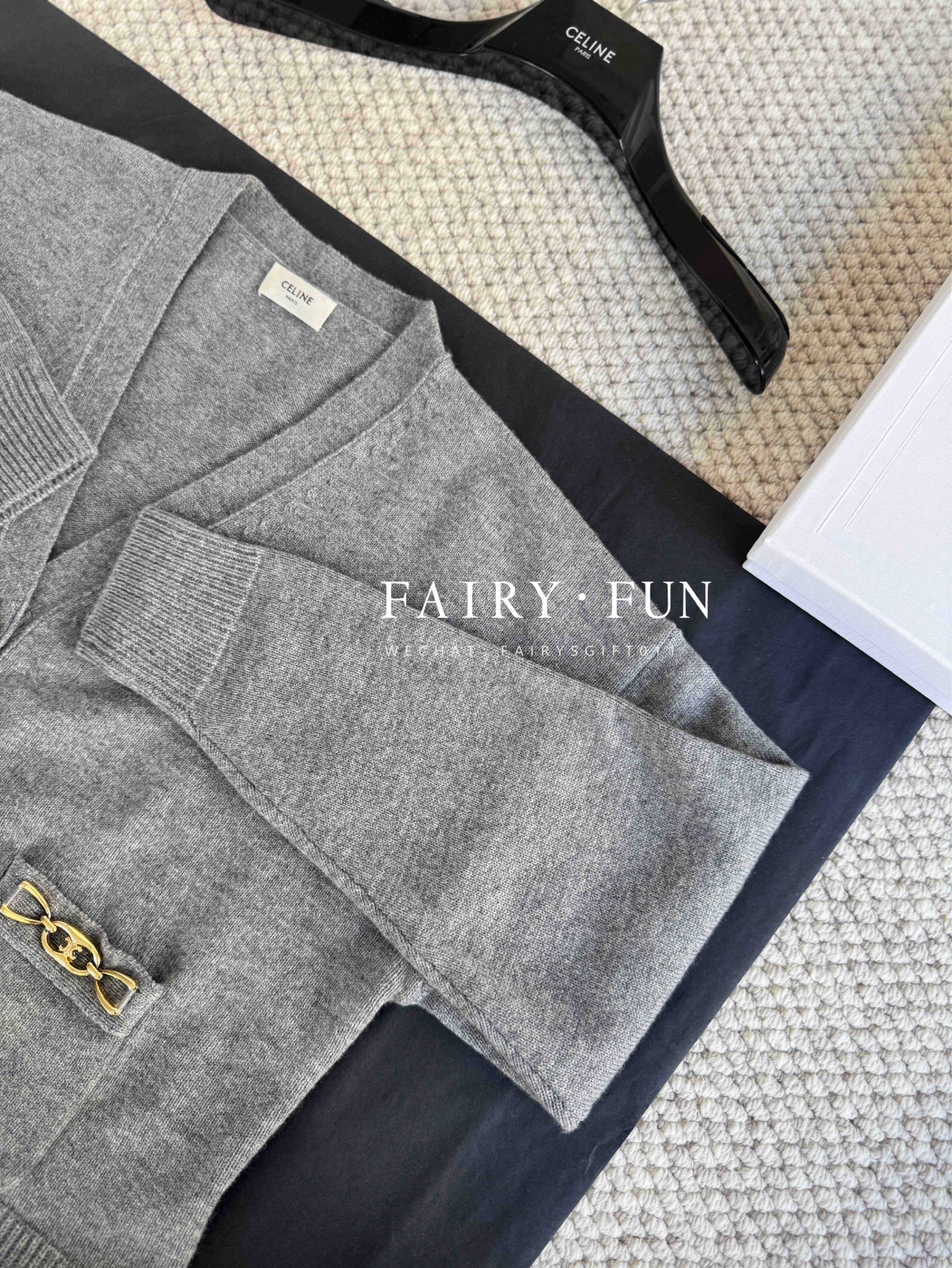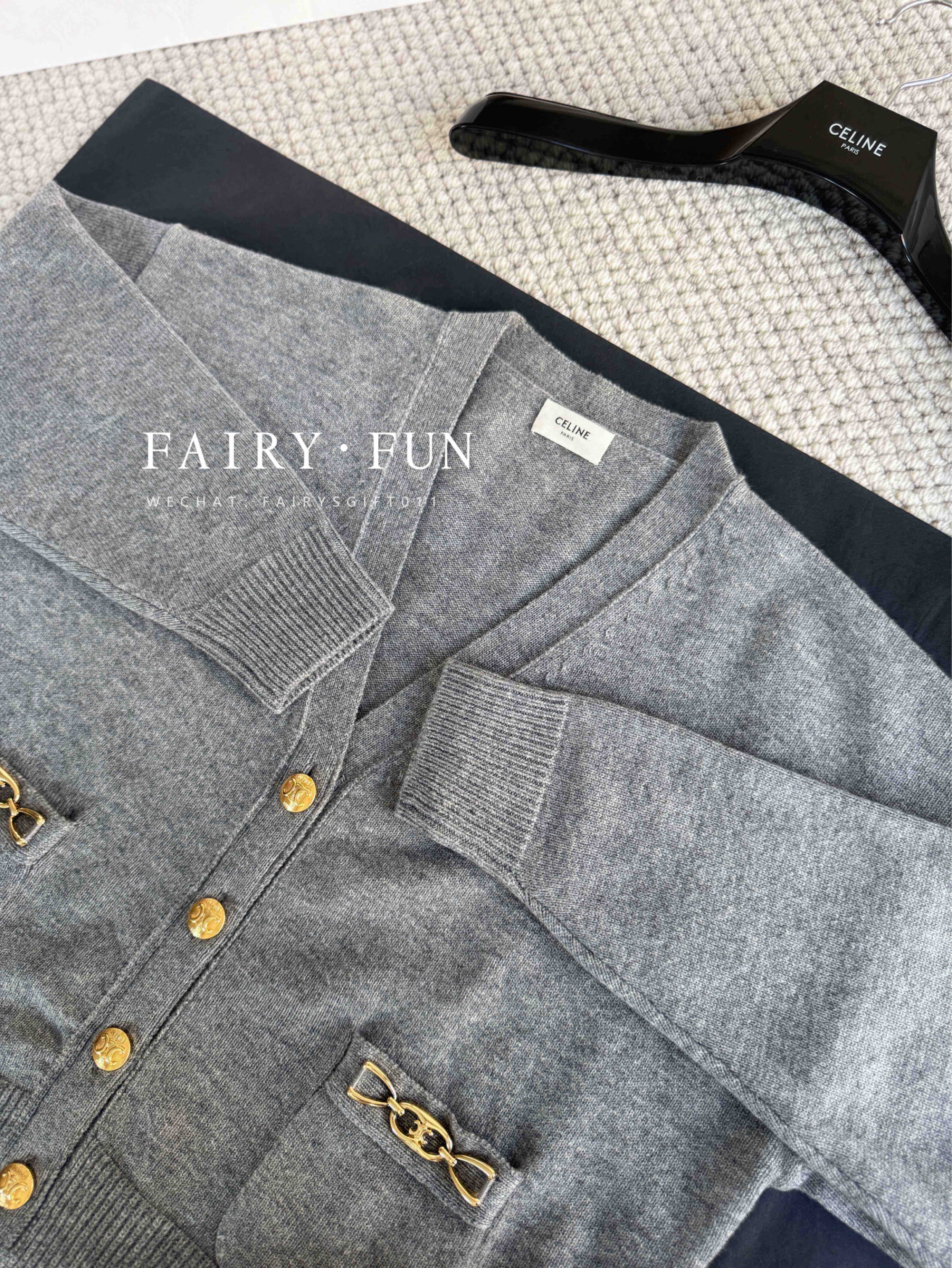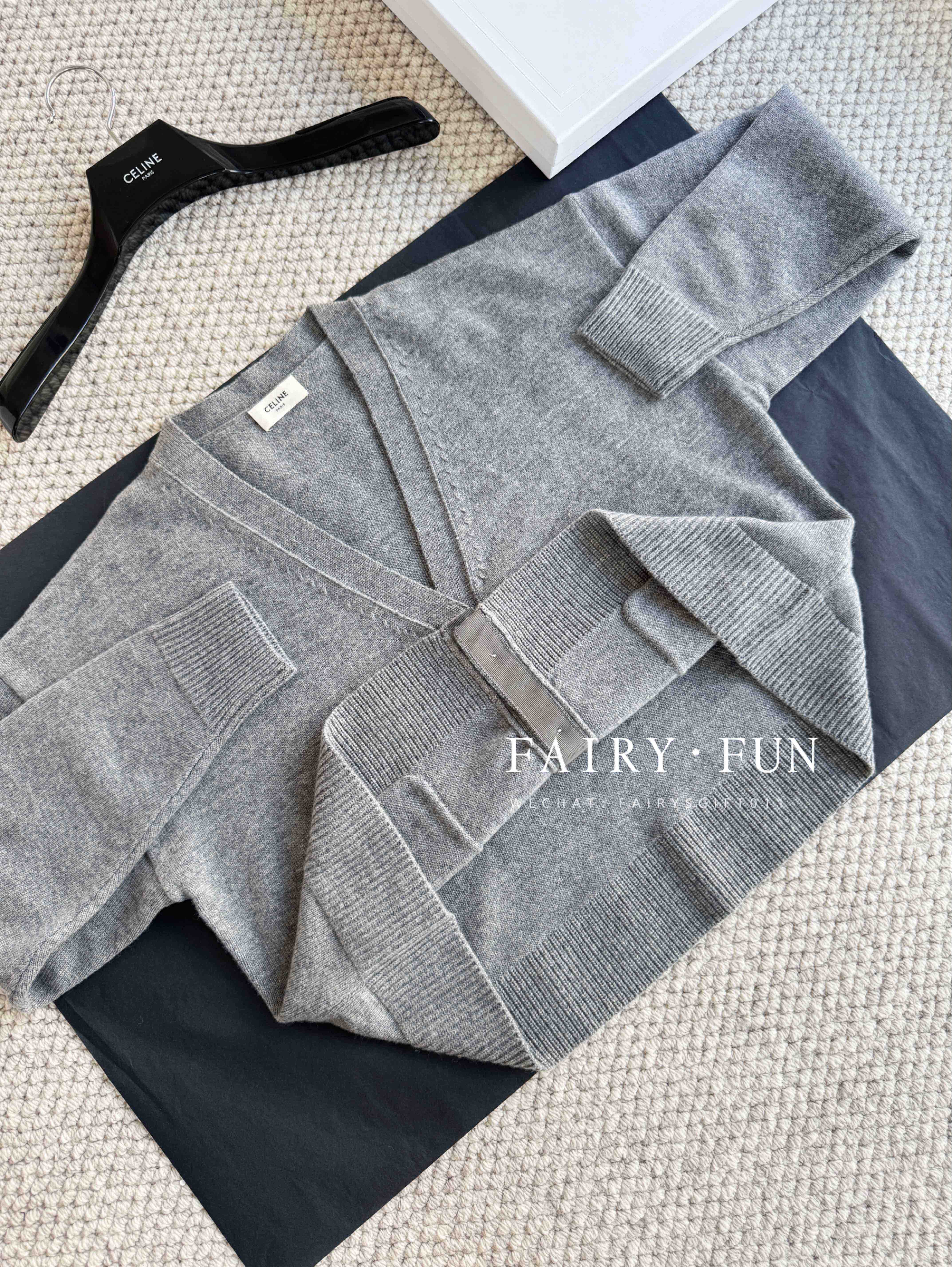 CE-S 链条羊绒灰开衫
