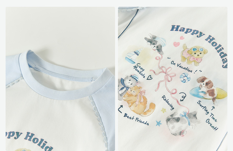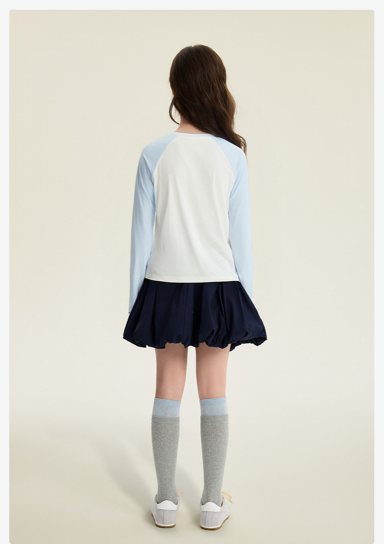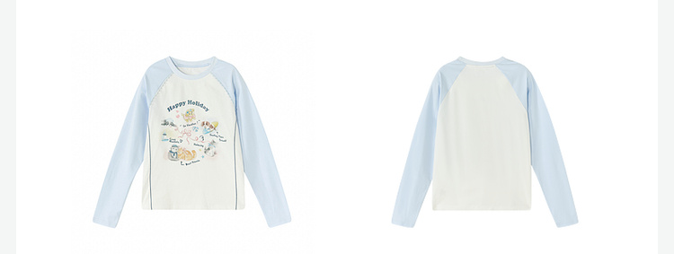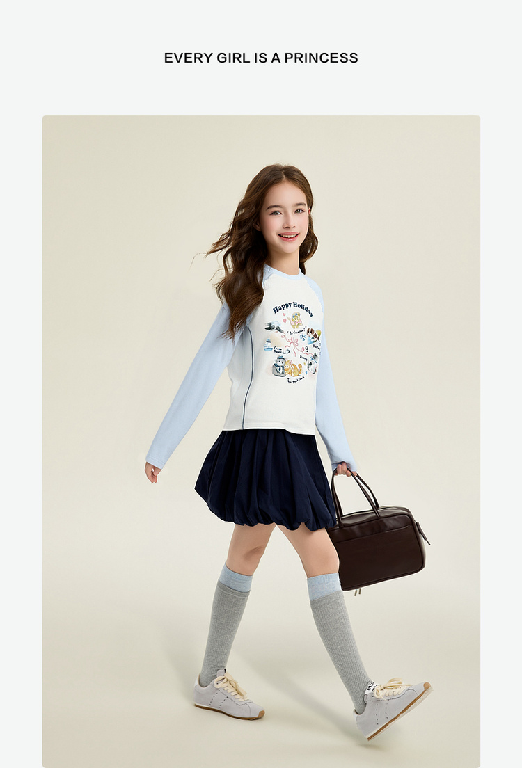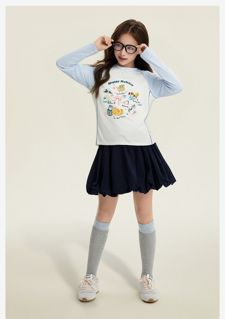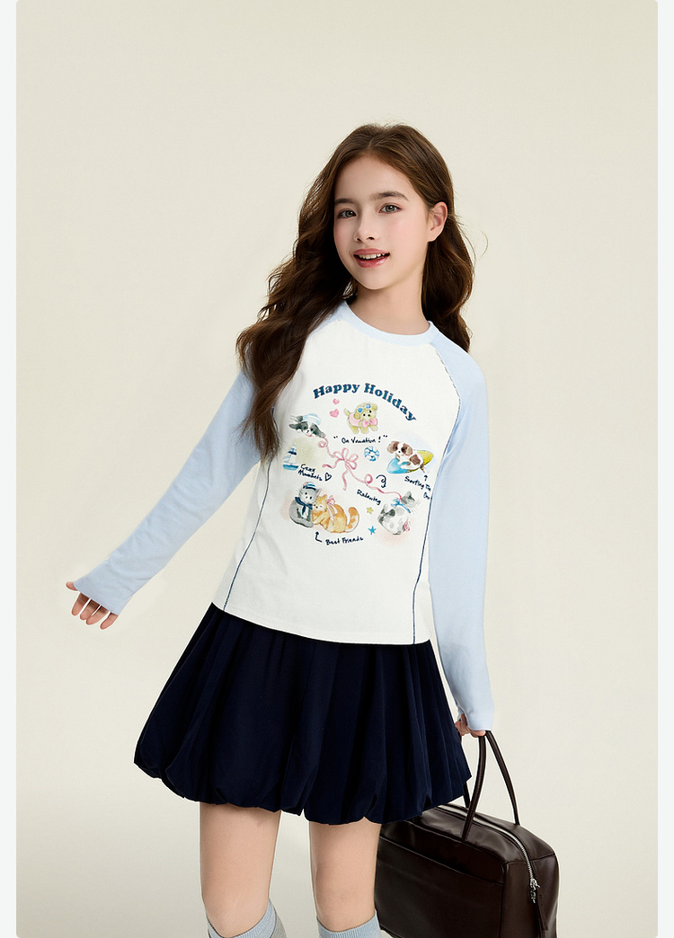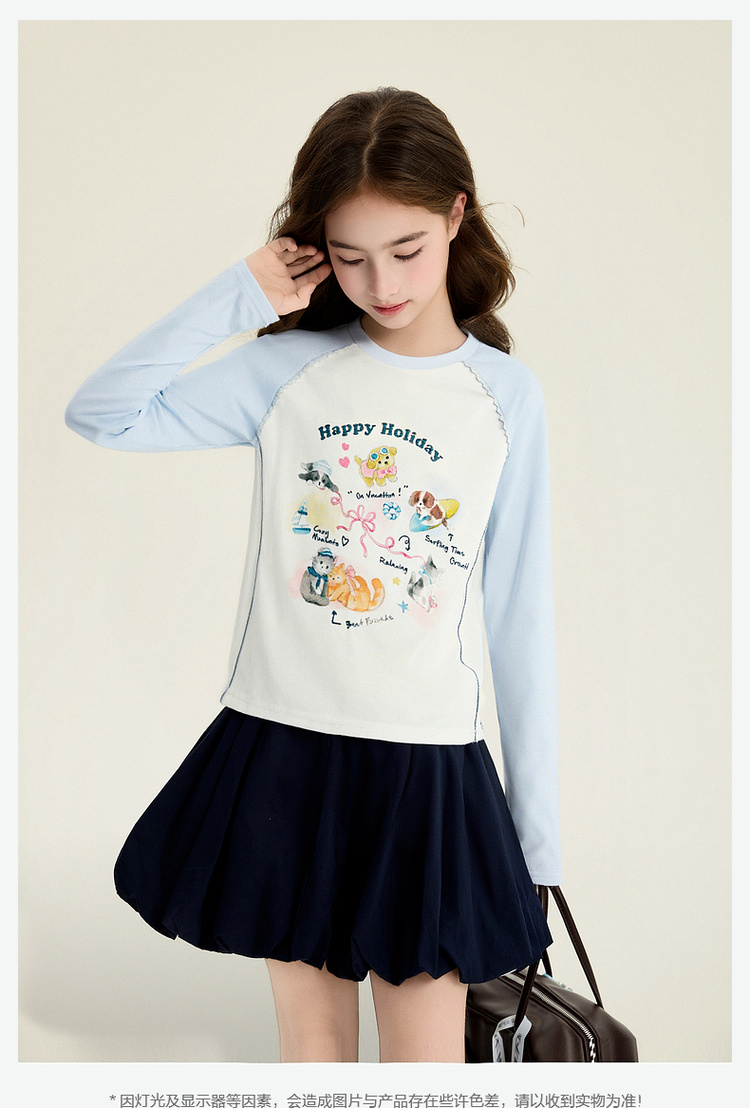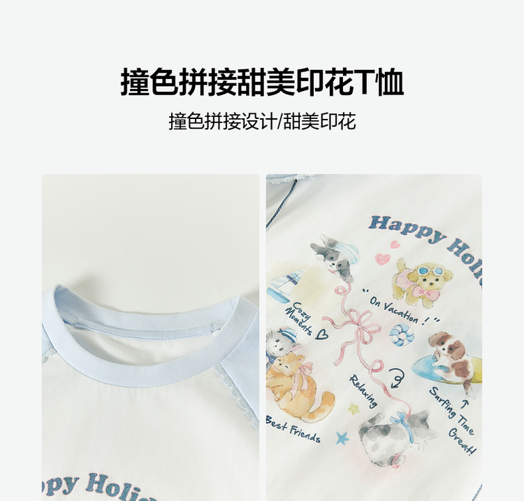 笛莎Deesha 童装女童T恤2026春新款撞色拼接甜美印花T恤