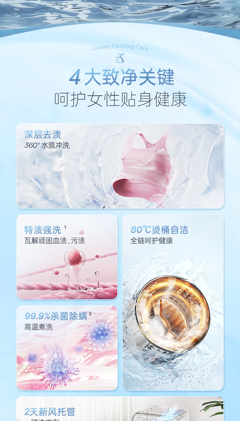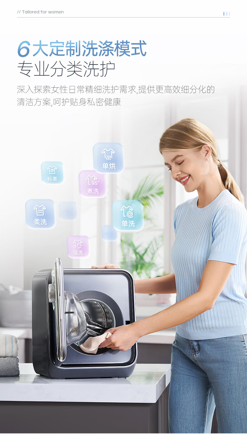 【摩飞 洗衣机MR3000】内衣裤清洗,滚筒全自动,洗烘存一体,小型烘干机,高温除菌,深层去血渍