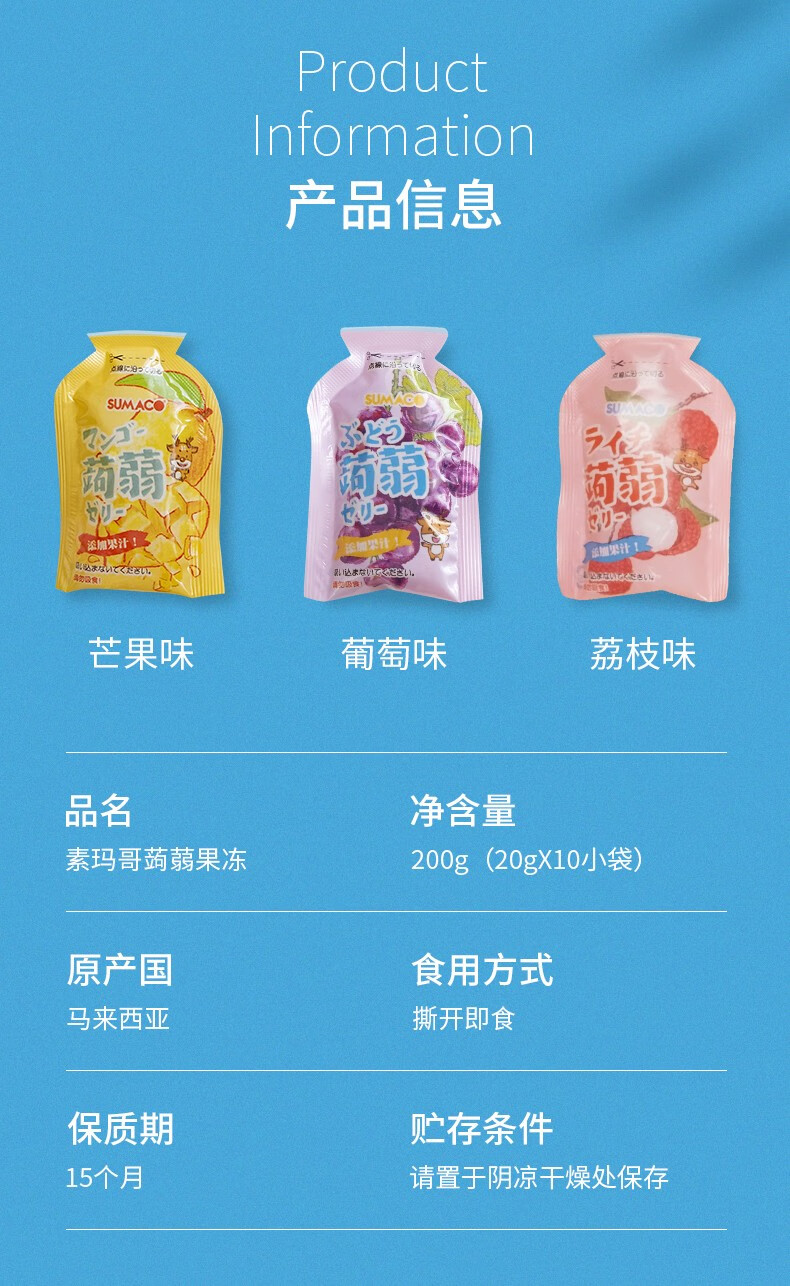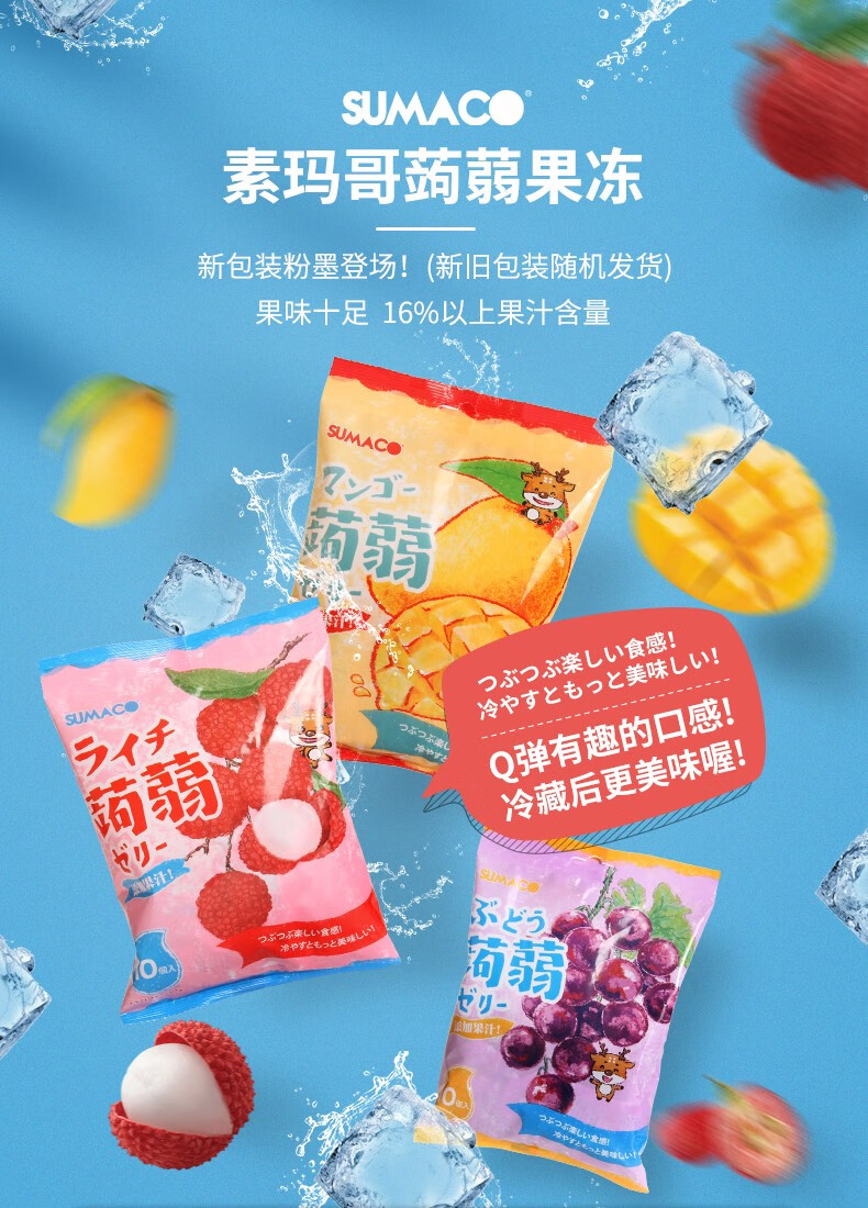 素玛哥荔枝汁/芒果汁/葡萄汁蒟蒻果冻200g Q弹有趣的口感冷藏后更美味 024882/024883/024884