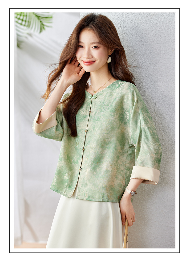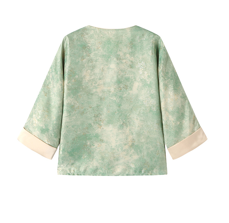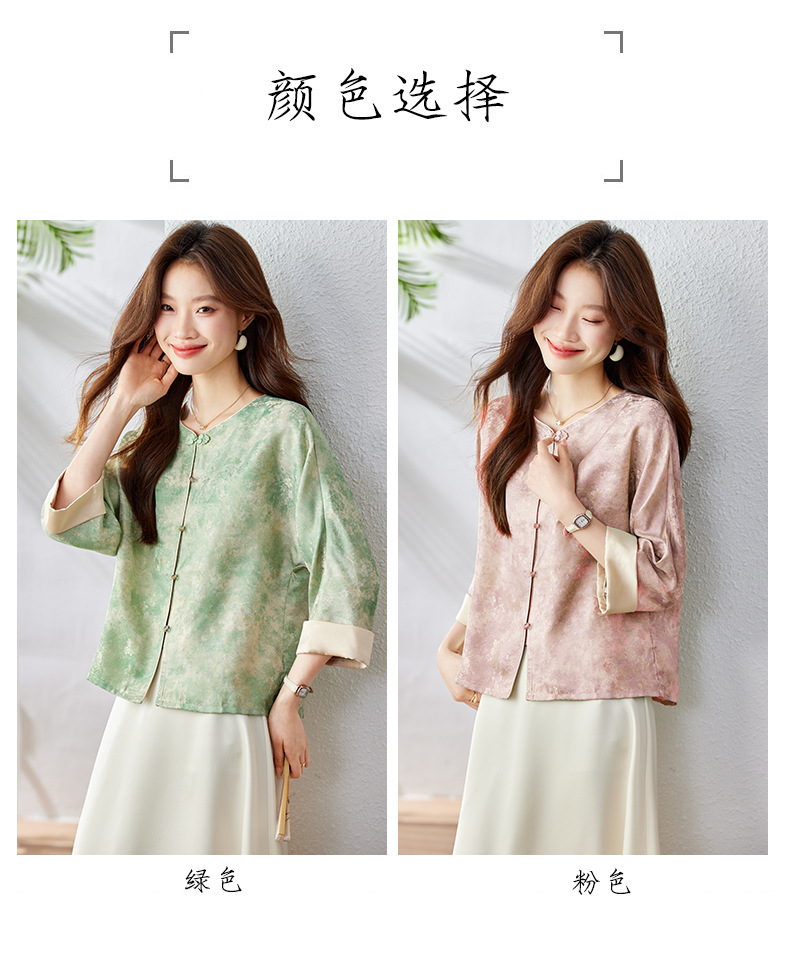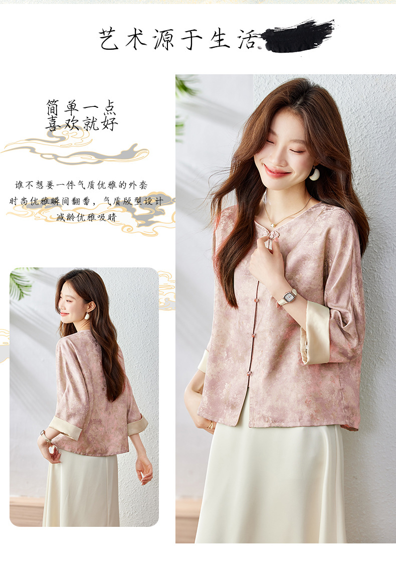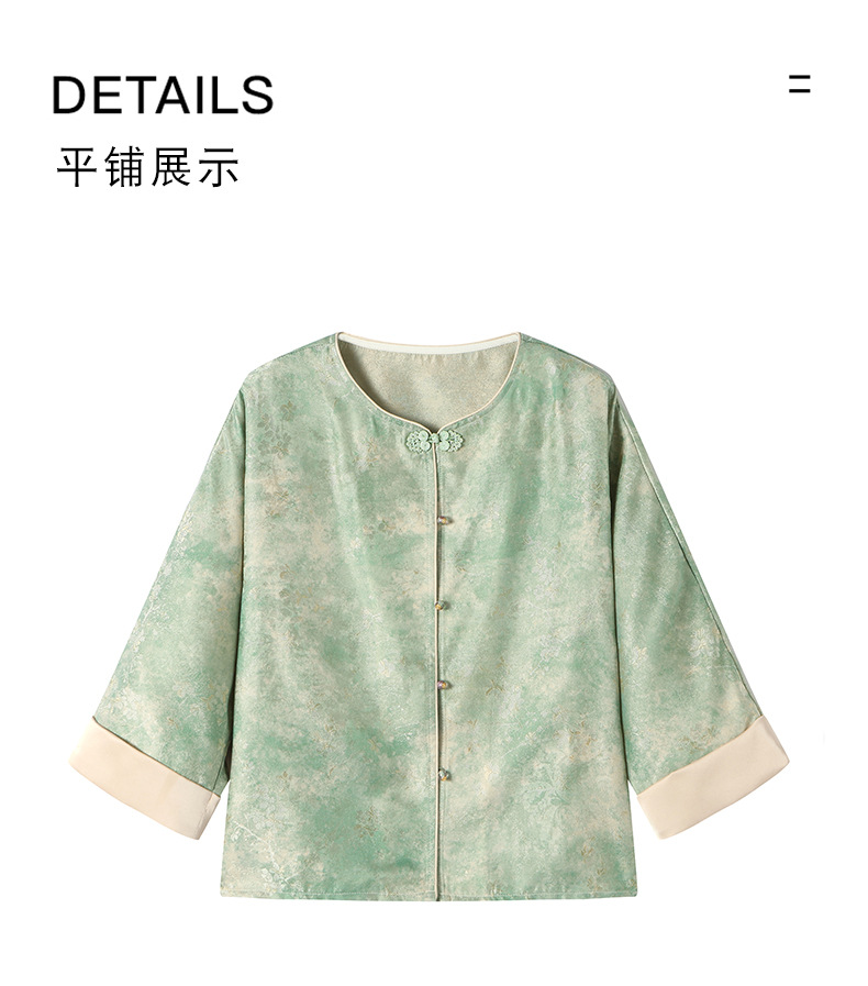 春夏新中式盘扣上衣 人丝提花双面7分袖外套上衣 单件