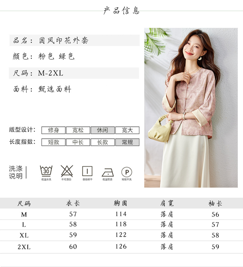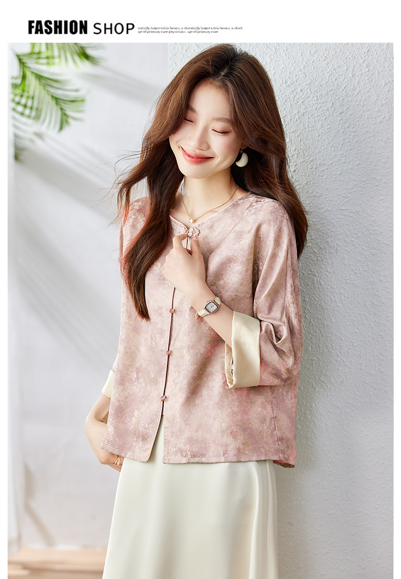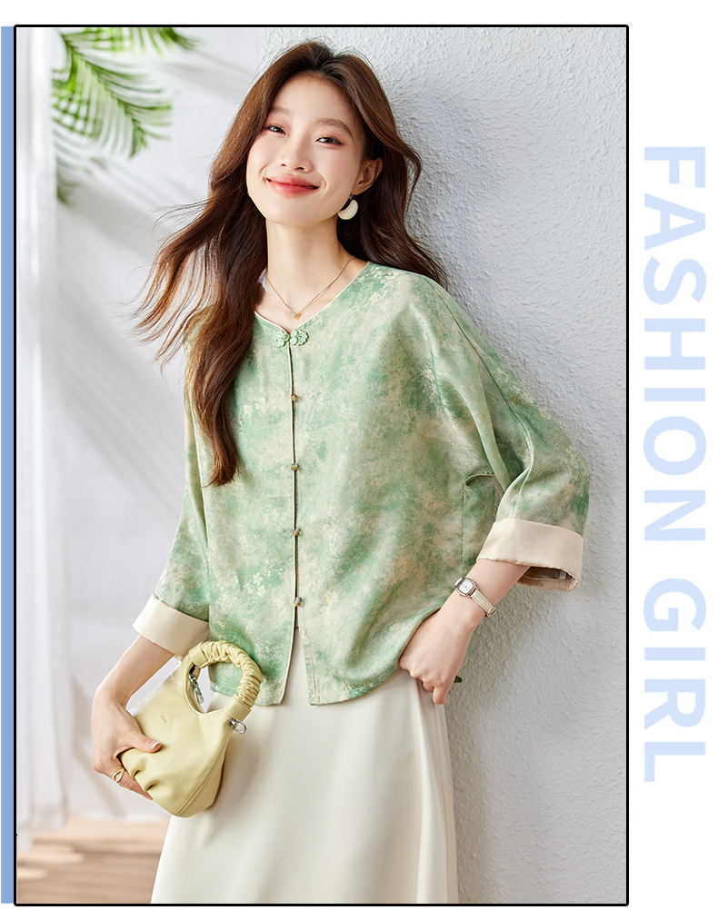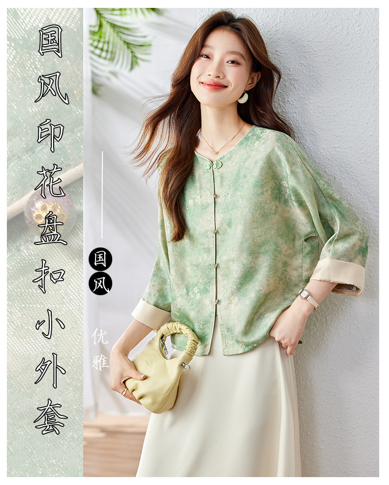 春夏新中式盘扣上衣 人丝提花双面7分袖外套上衣 单件