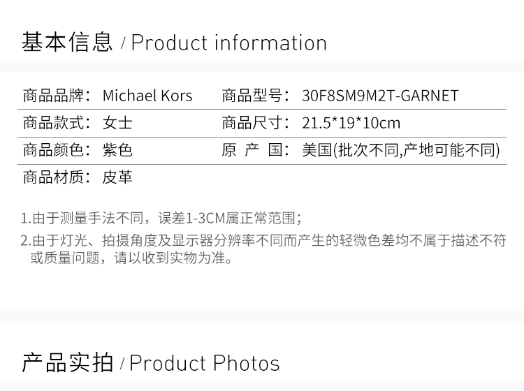 Michael Kors 迈克高仕 女士紫色手提包挎包 30F8SM9M2T-GARNET