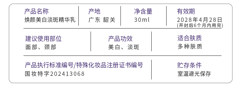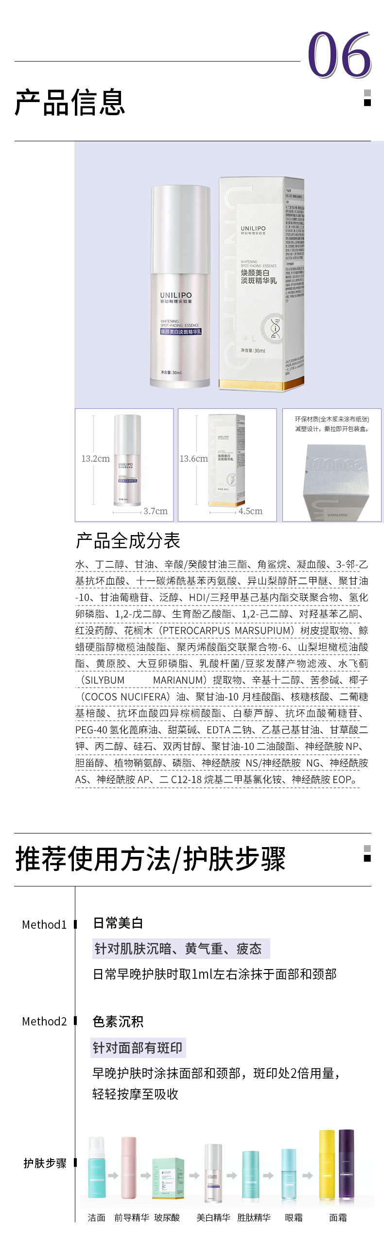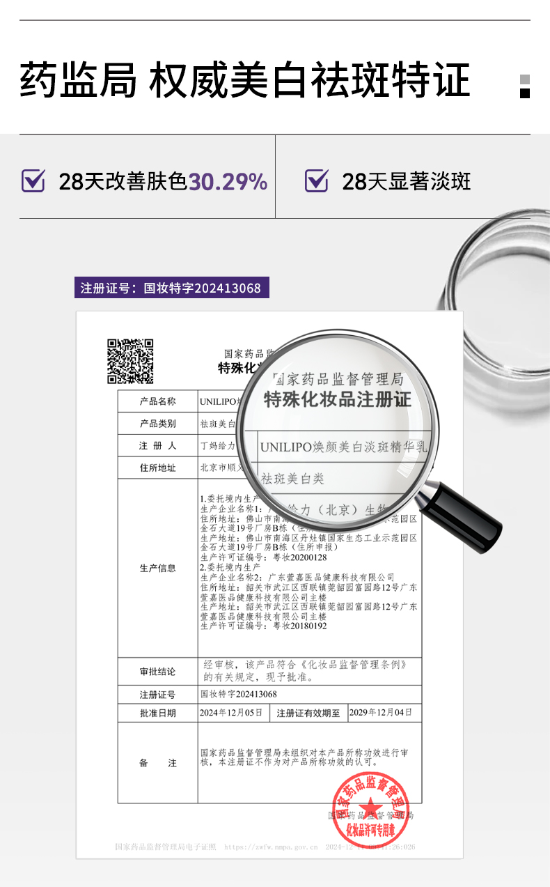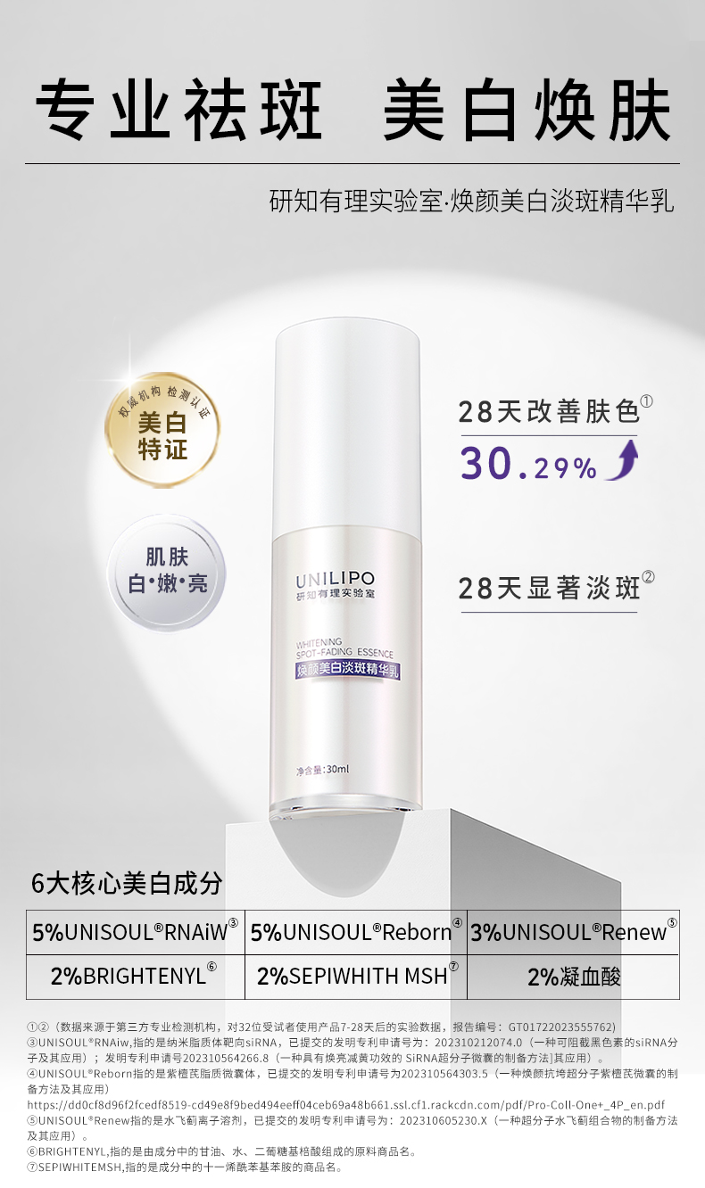 【美白特证】 UNILIPO研知有理 紫檀芪焕颜精华乳 祛斑抗皱
