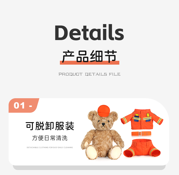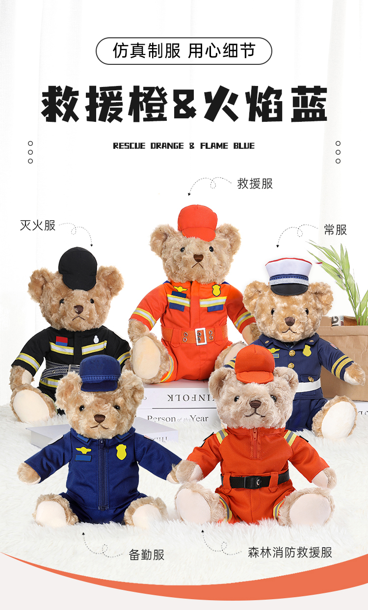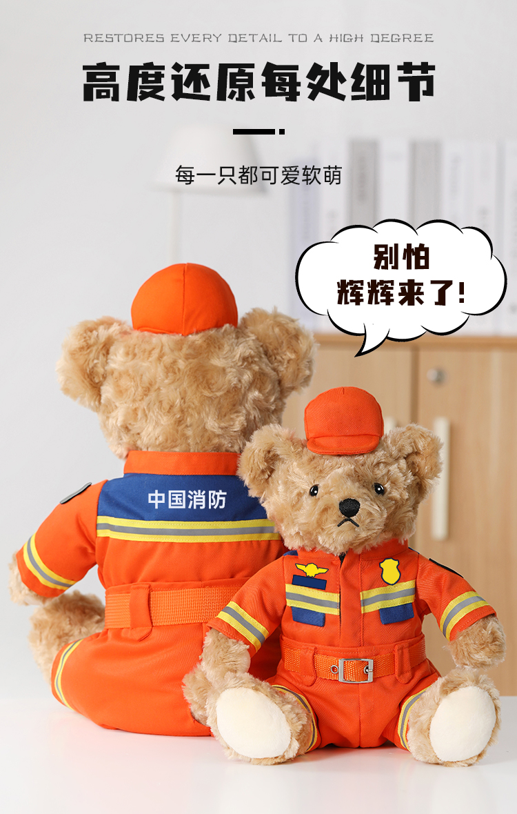 【实付满199送钥匙扣】【坐姿消防熊辉辉】毛绒小熊公仔玩具服装可脱卸毛绒玩偶送礼礼品礼物