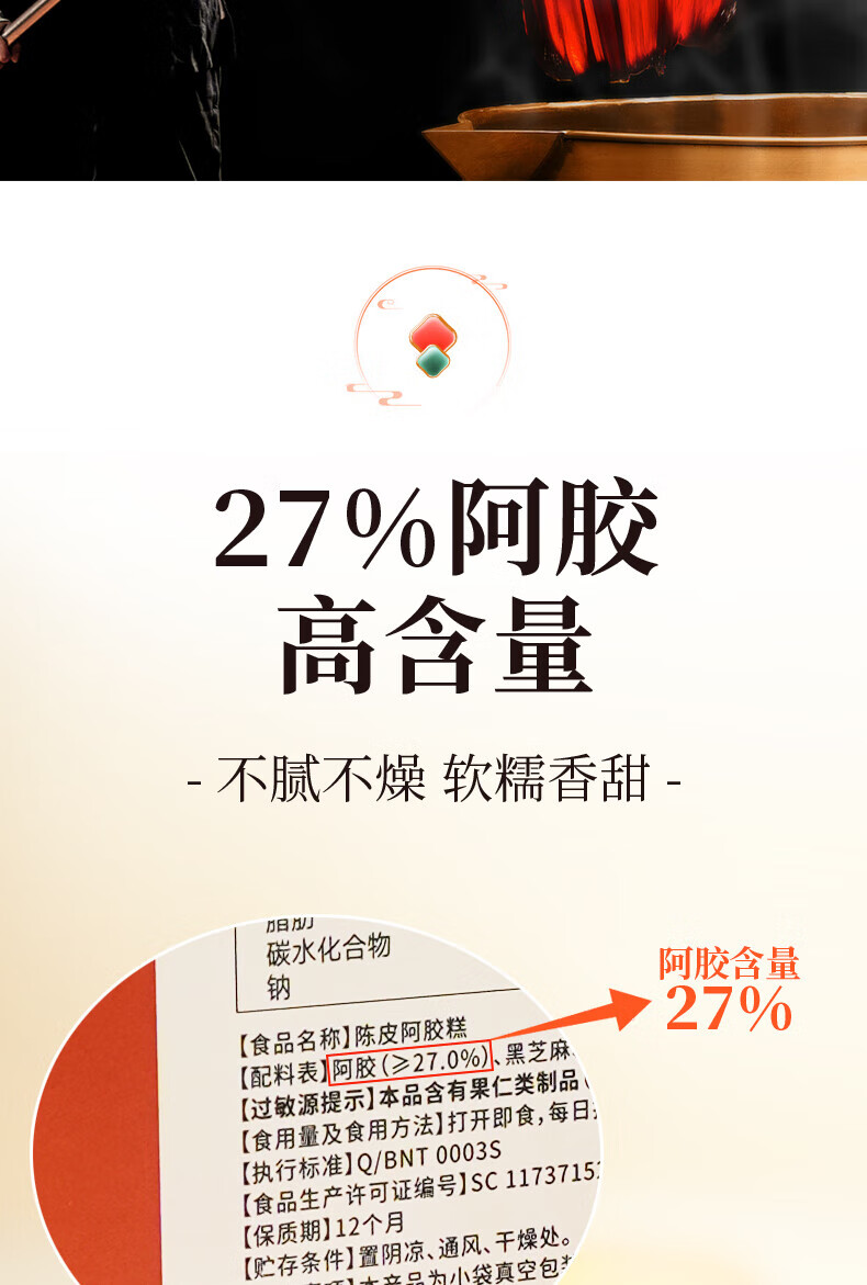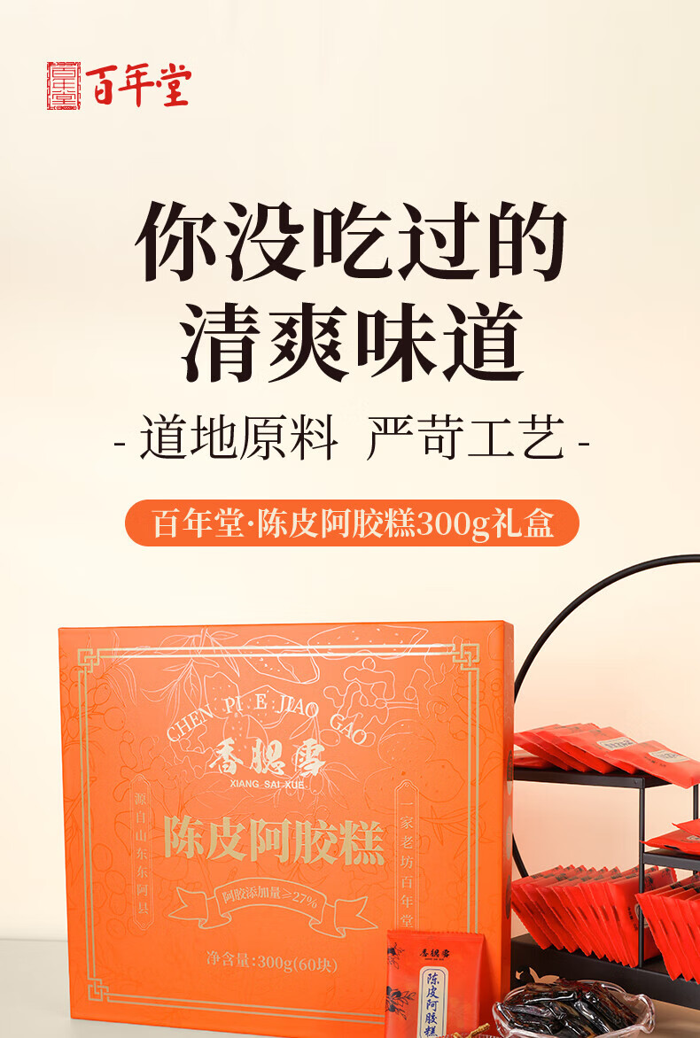 【礼遇】百年堂 陈皮阿胶糕300g/礼盒(60袋)