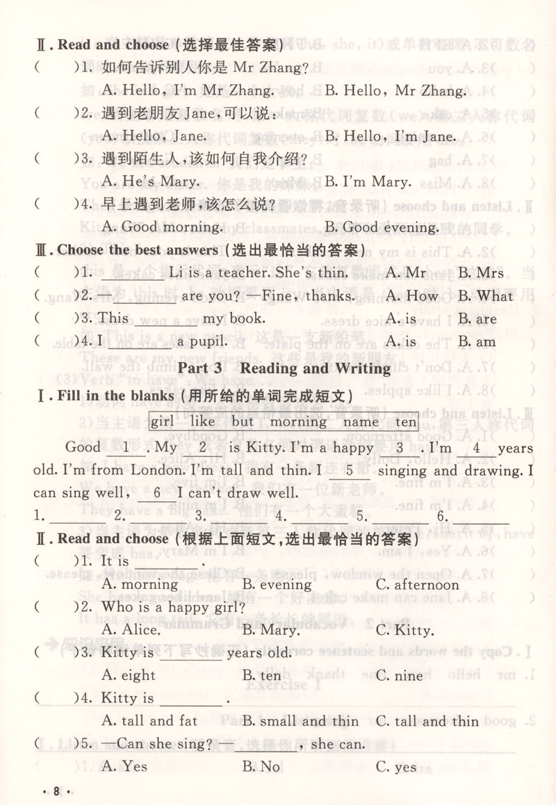 课后精练卷语文数学英语1-8年级任选