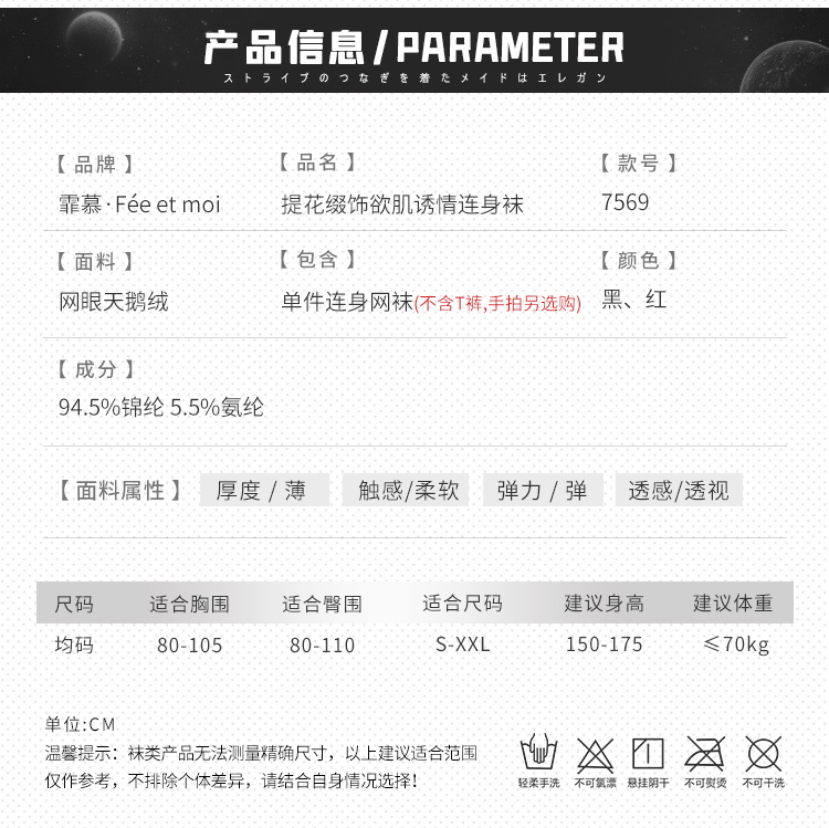 霏慕 提花缀饰欲肌诱情连身袜7569 情趣内衣丝袜黑丝情感诱人