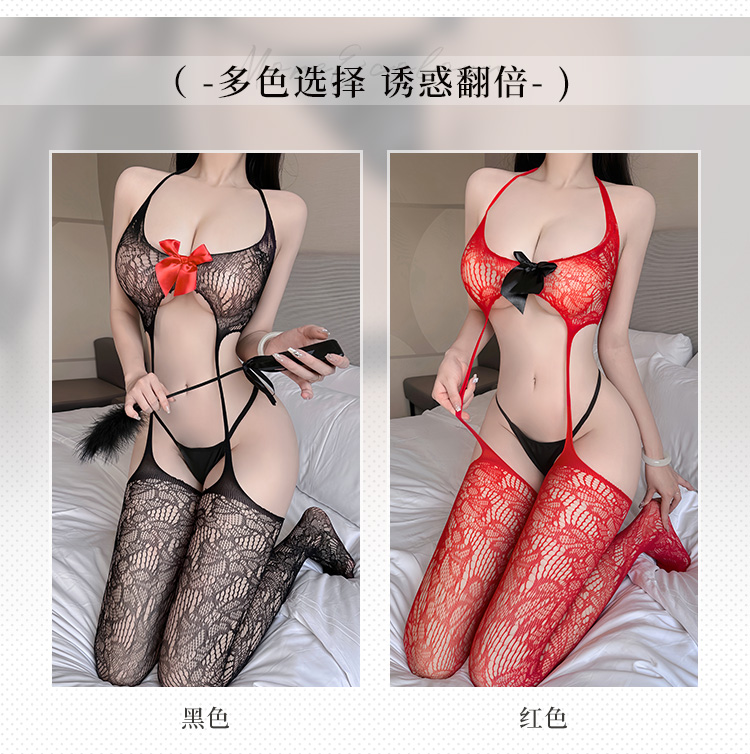 霏慕吊带露肩开裆连身袜7540 性感露胸连身袜情趣内衣激情套装黑丝袜女