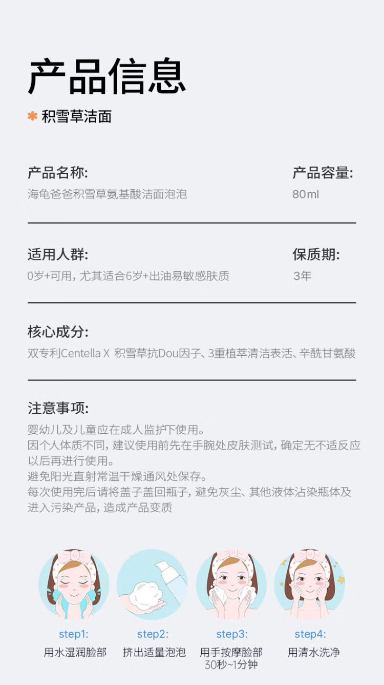 海龟爸爸 积雪草氨基酸洁颜泡泡120ml