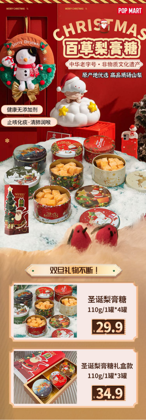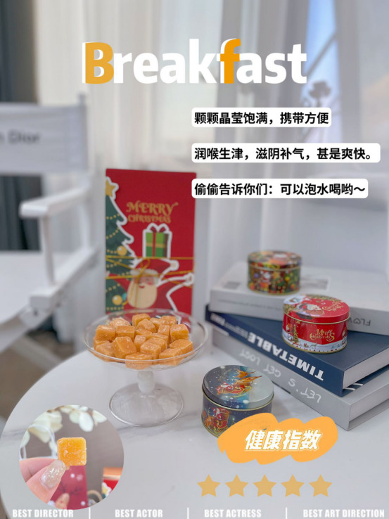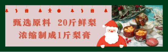 双旦节日即将到来,圣诞特别款来袭! 不仅冰冰凉凉、好吃润肺, 自带特别“养眼” 极富节日气息的包装礼盒, 让你童心萌发~ 圣诞作为「氛围感大师」! 送人自留都绝佳
