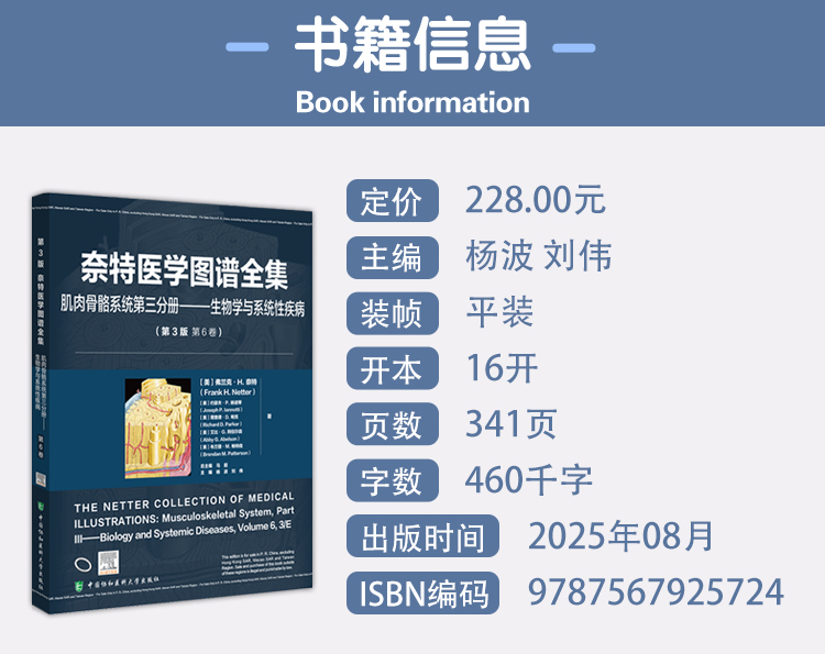 奈特医学图谱全集 肌肉骨骼系统第三分册 生物学与系统性疾病(第3版第6卷)杨波 刘伟 主编 9787567925724 中国协和医科大学出版社