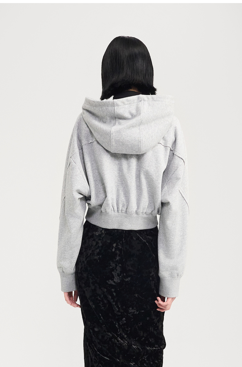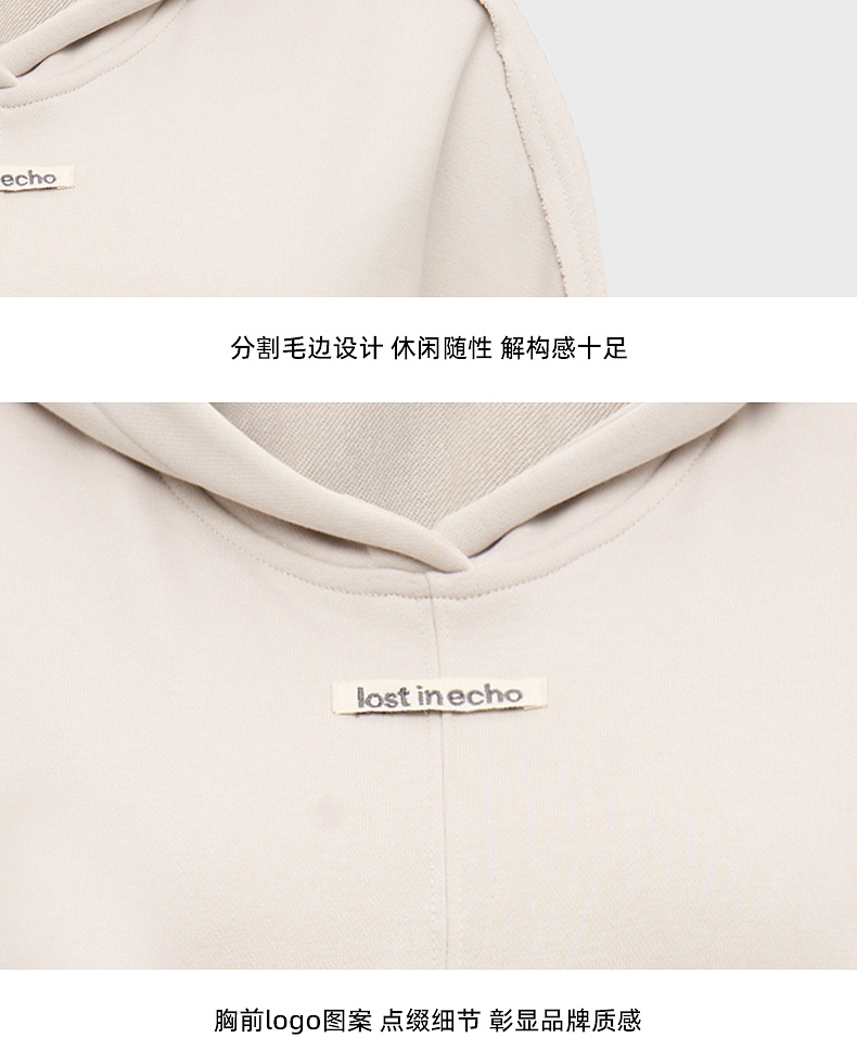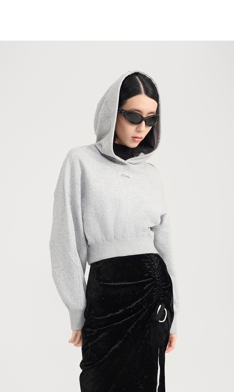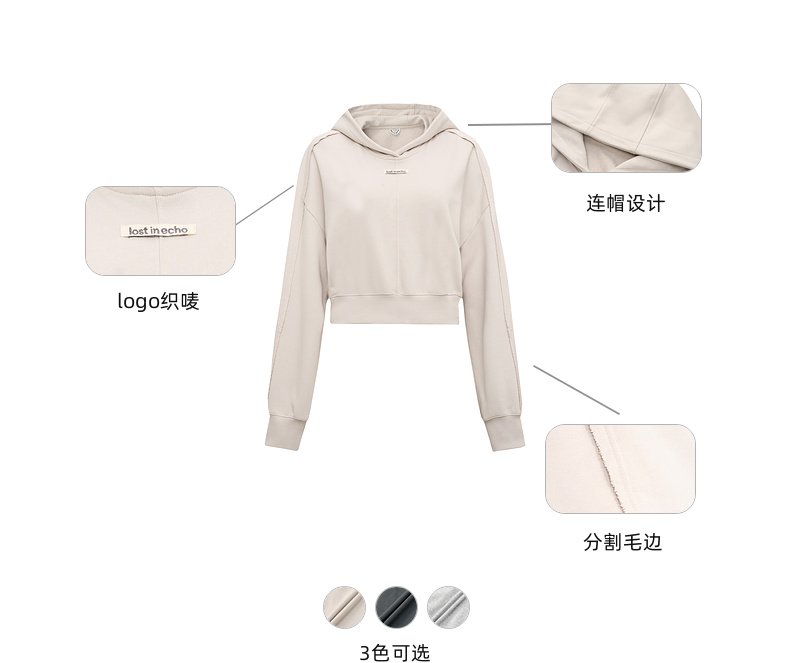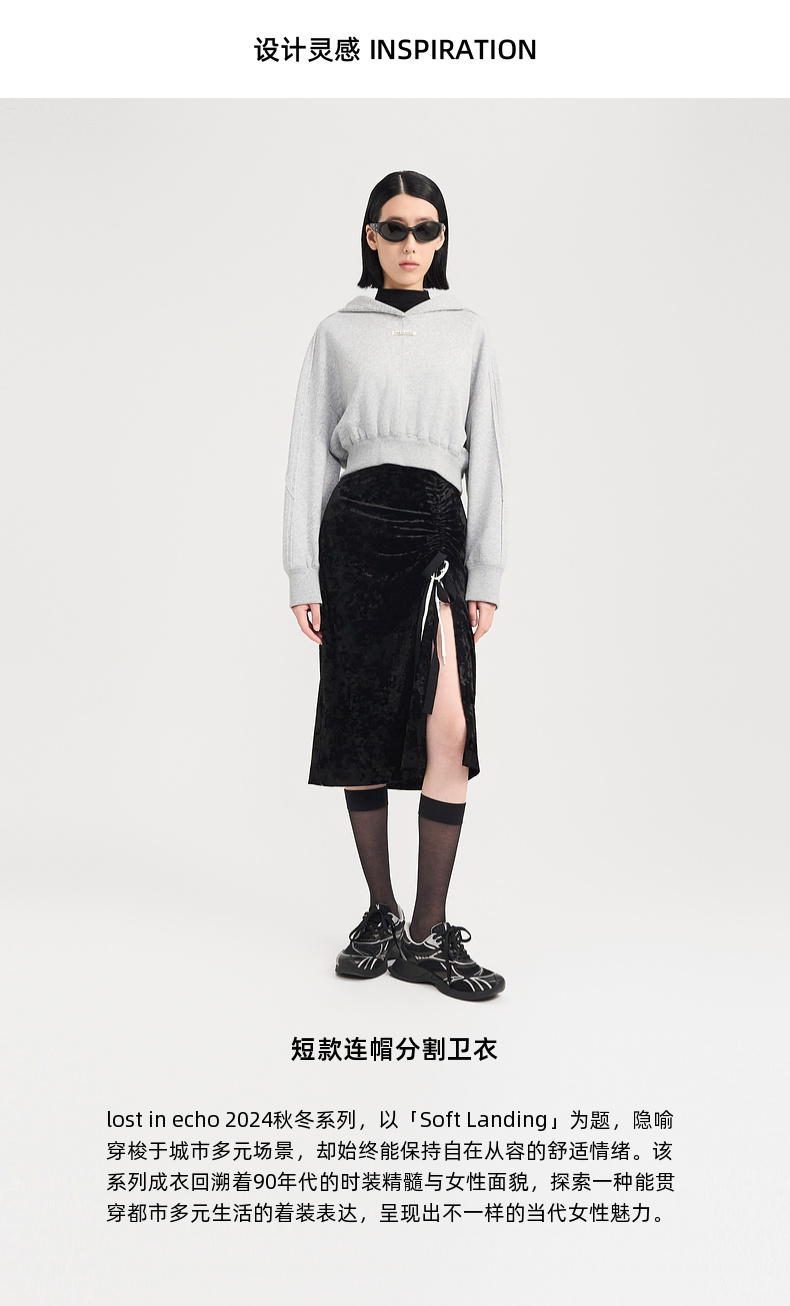 [捡漏价]lost in echo2024秋冬新品休闲慵懒落肩短款灰色连帽卫衣上衣女