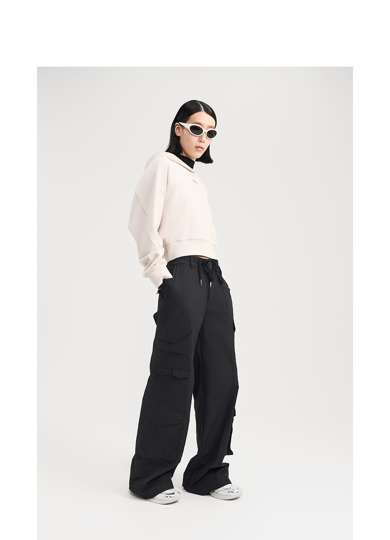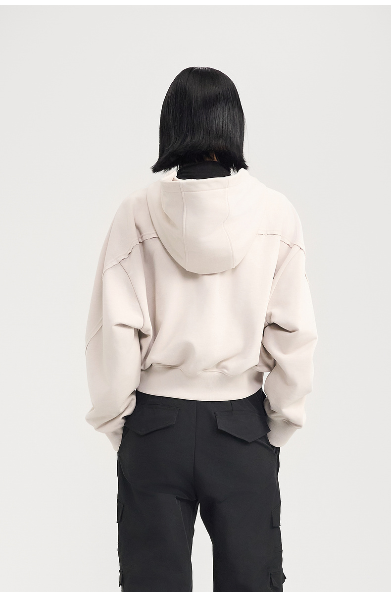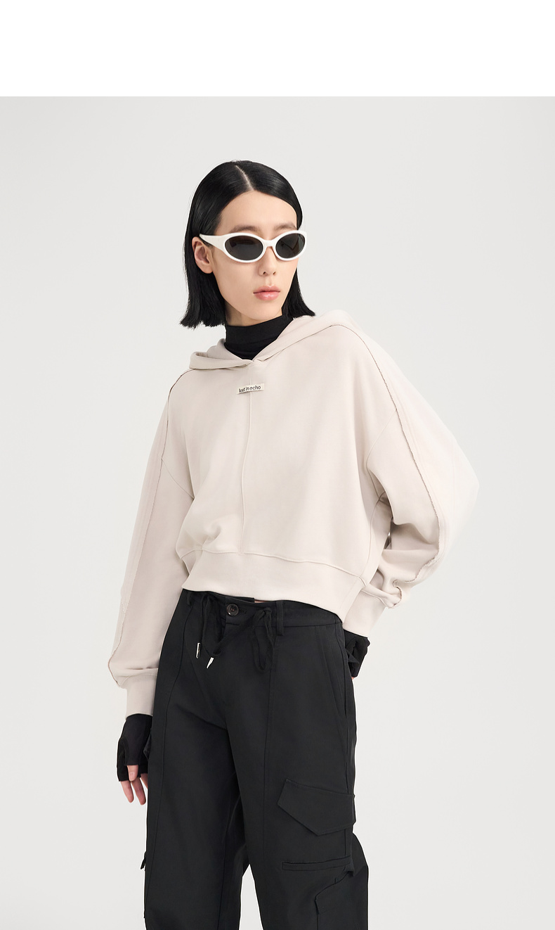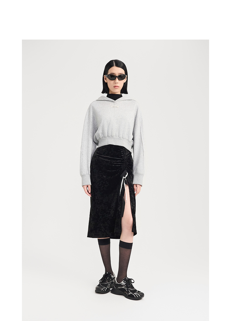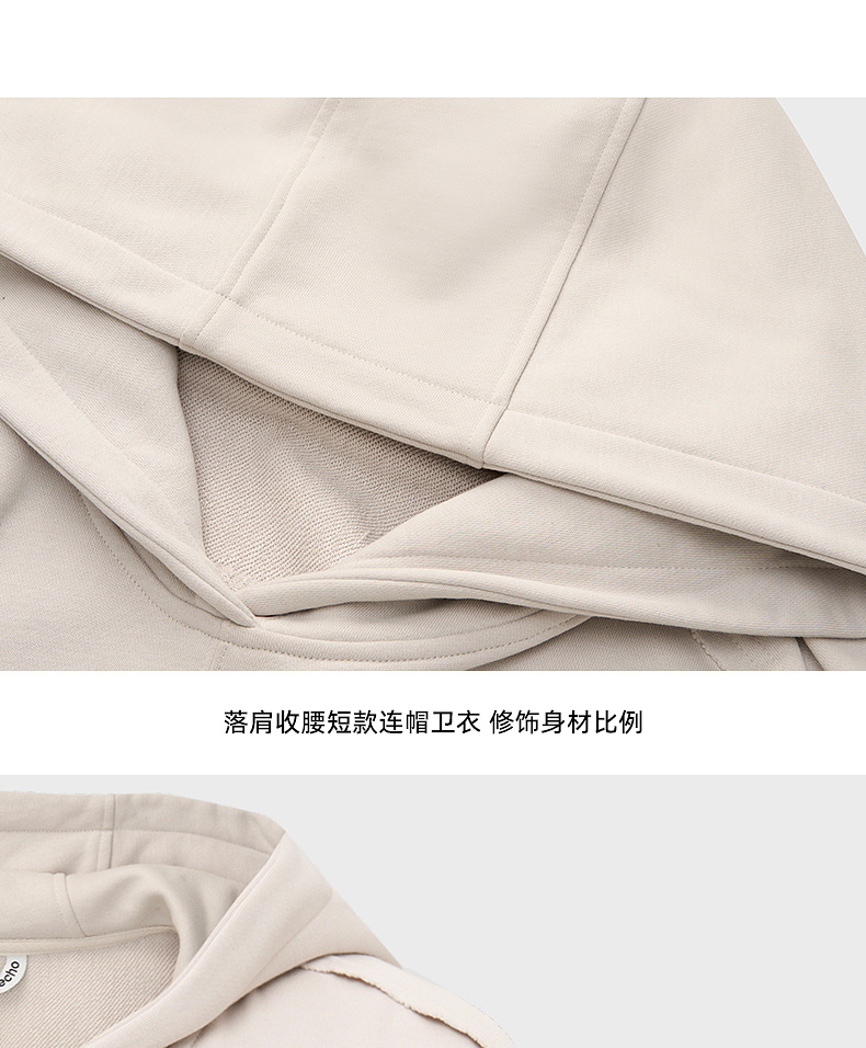 [捡漏价]lost in echo2024秋冬新品休闲慵懒落肩短款灰色连帽卫衣上衣女
