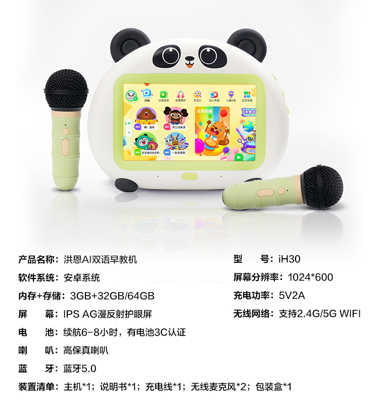 洪恩AI双语早教机 真护眼/真双语/真AI 下单赠早教机永久会员