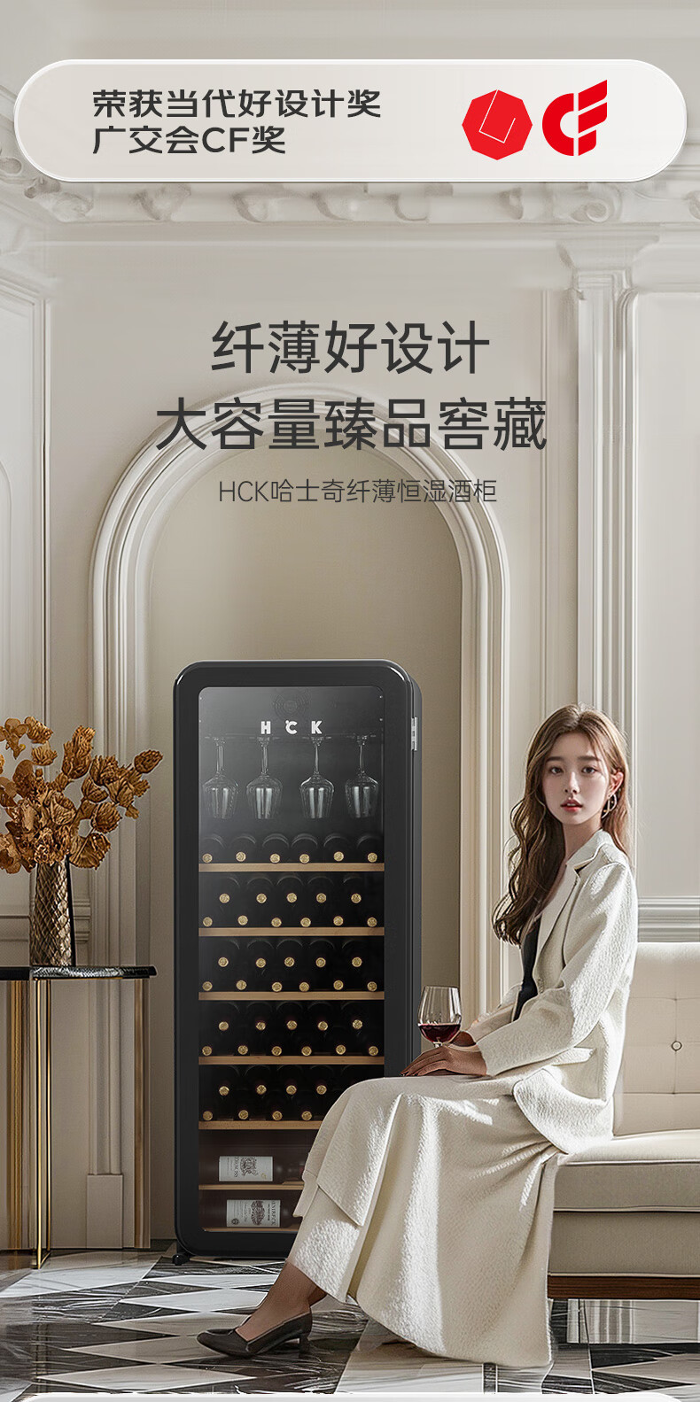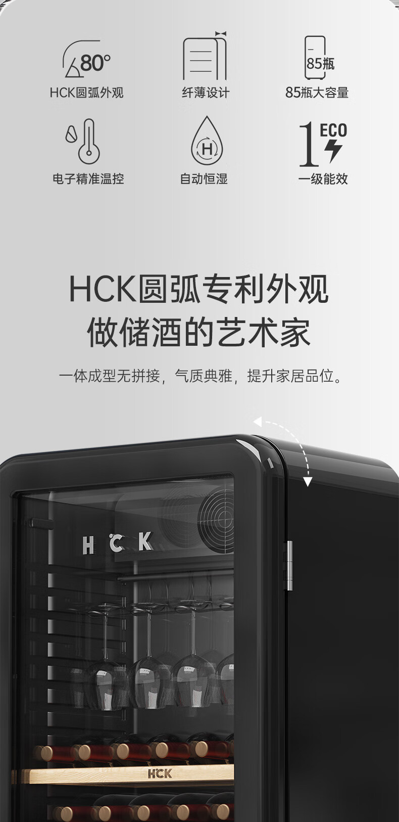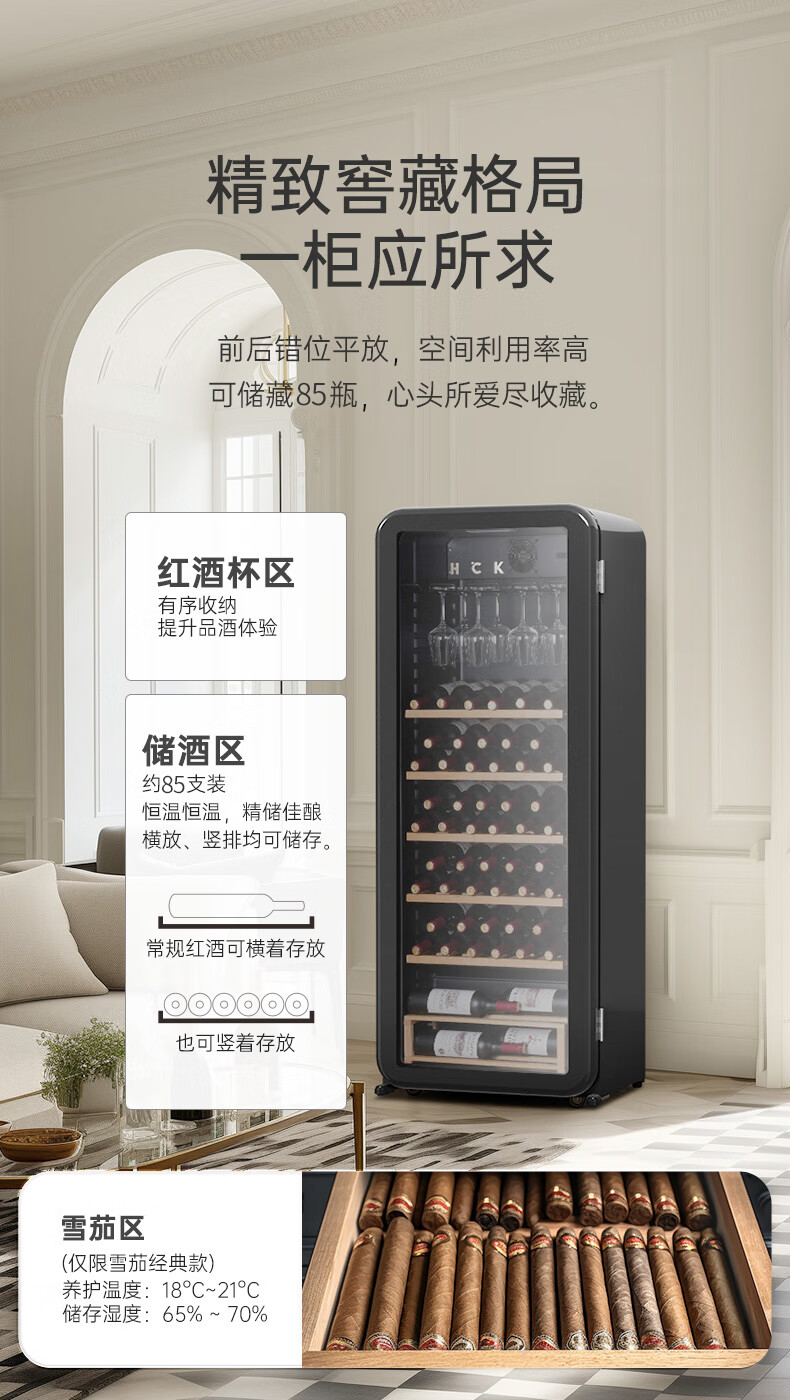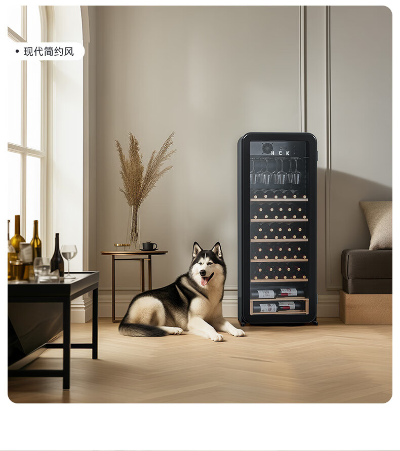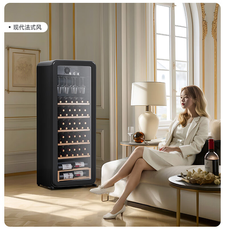 HCK哈士奇酒柜212升超薄家用恒温雪茄柜茶叶保湿柜嵌入式客厅红葡萄酒冷藏柜sc208r 超薄酒柜丨星空黑 85瓶