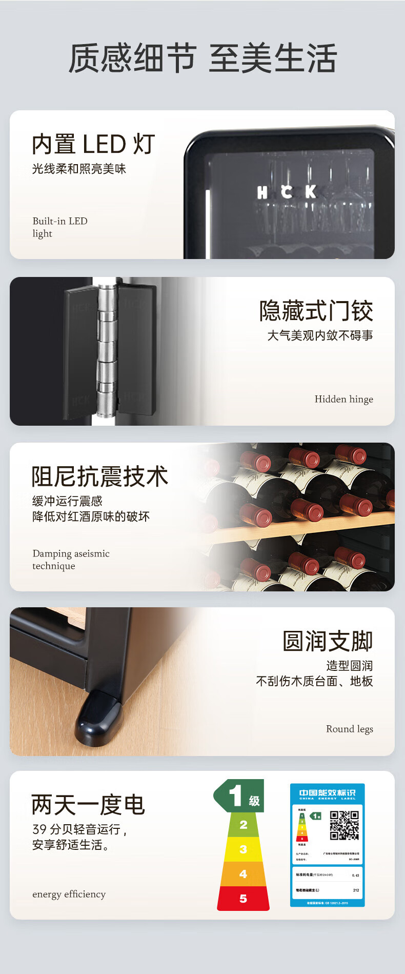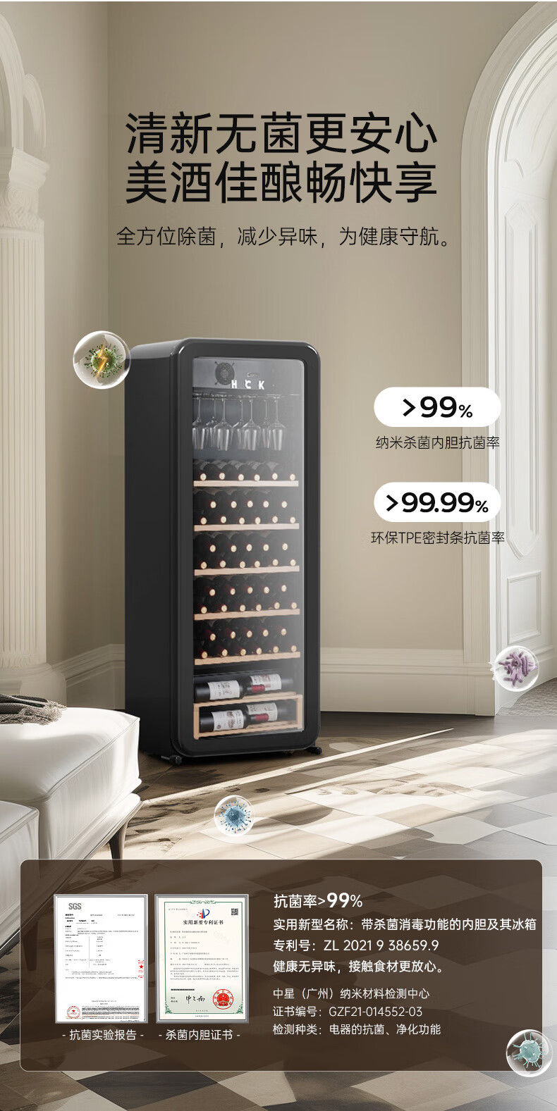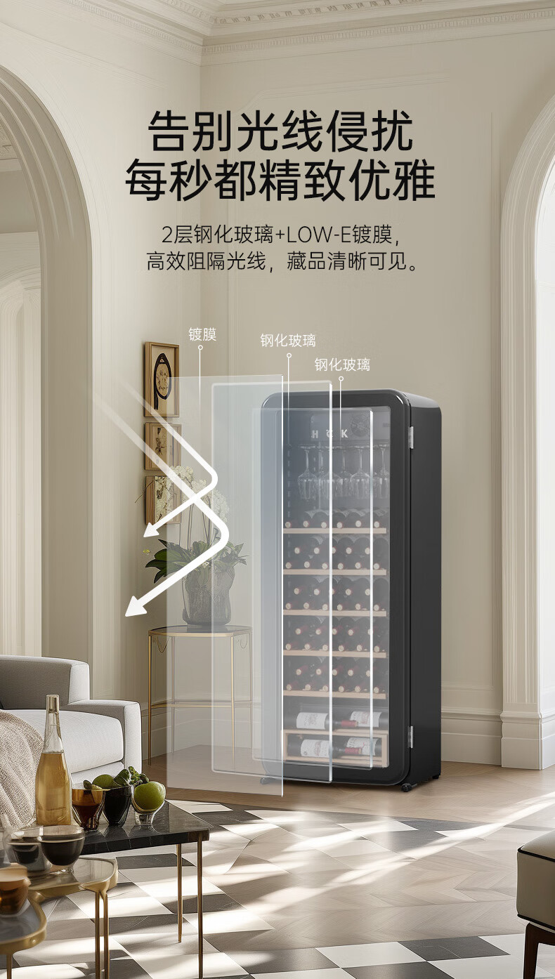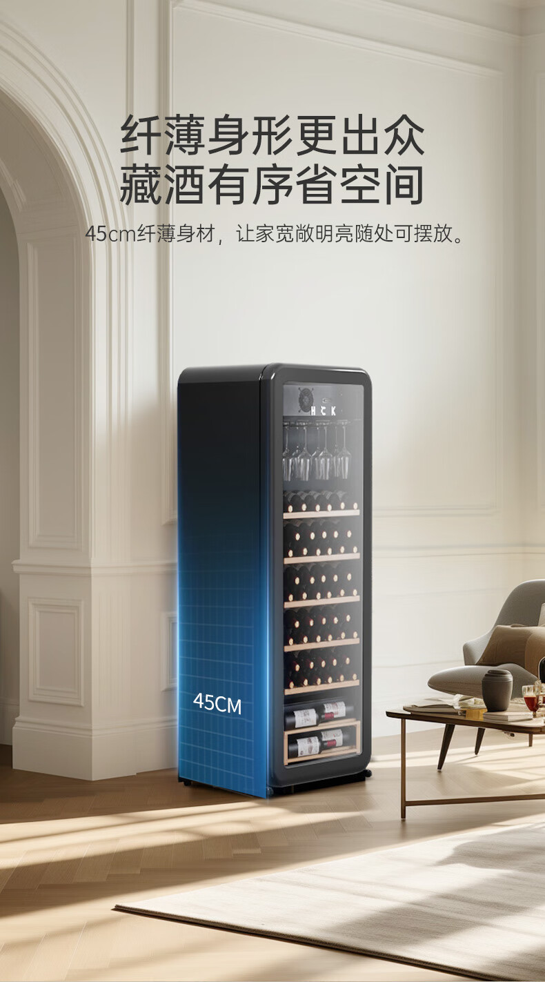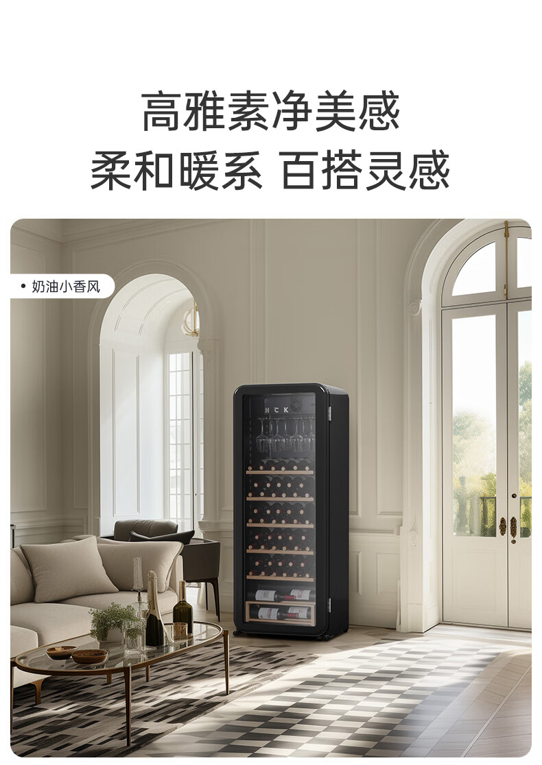 HCK哈士奇酒柜212升超薄家用恒温雪茄柜茶叶保湿柜嵌入式客厅红葡萄酒冷藏柜sc208r 超薄酒柜丨星空黑 85瓶