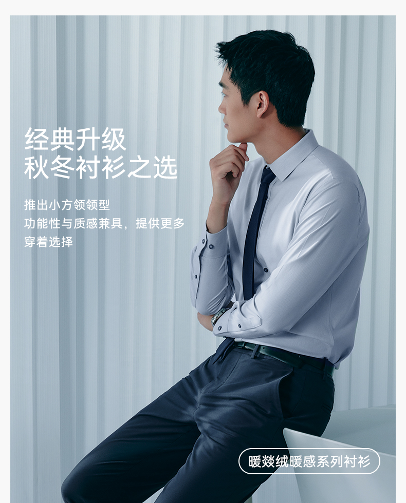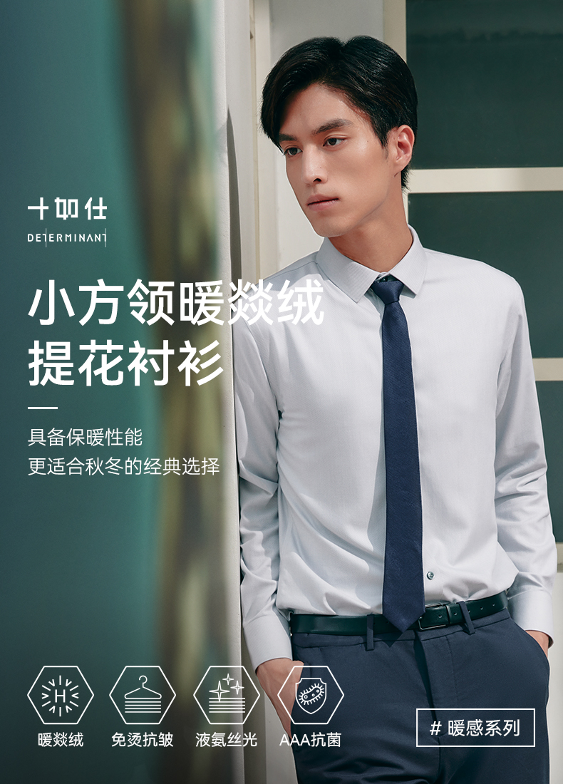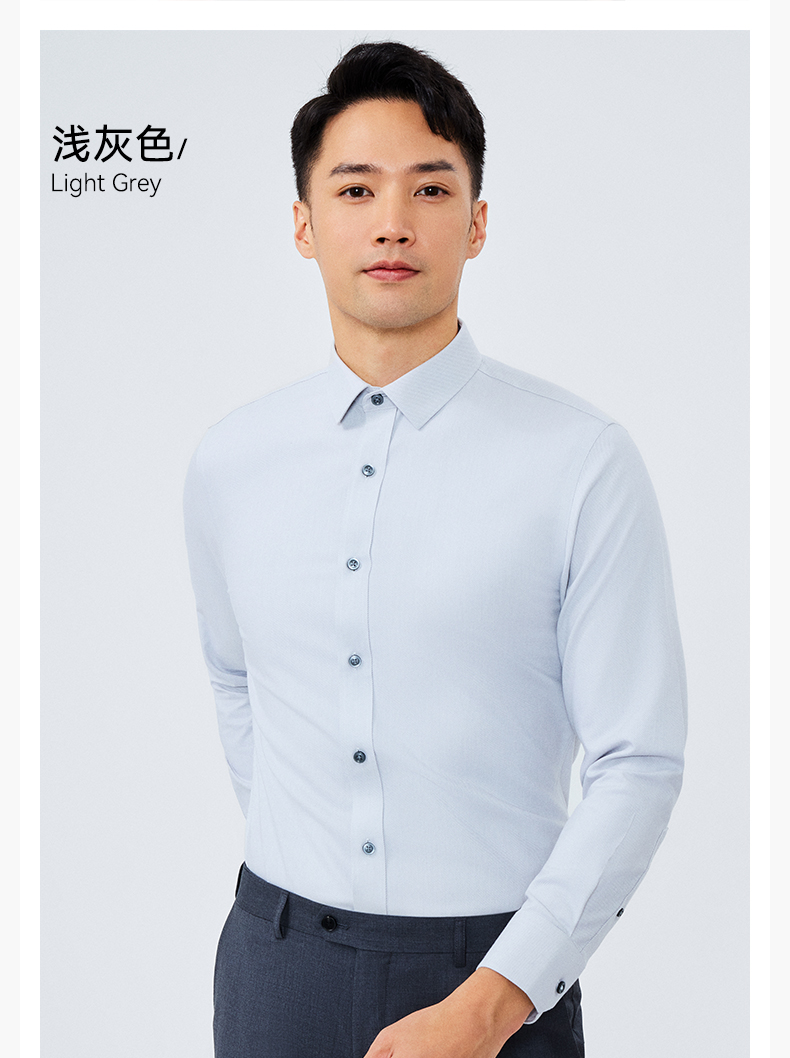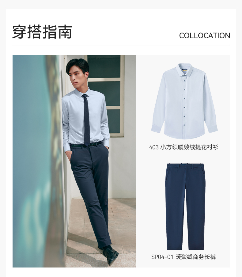 十如仕小方领混纺提花磨毛长袖衬衫-403