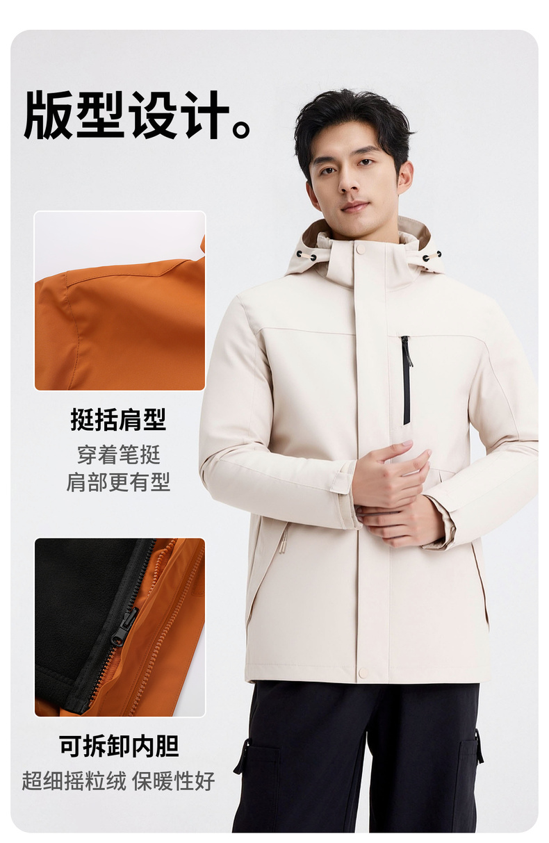 【冲锋系列&防水】圣得西男女同款2025秋新款户外三合一连帽外套