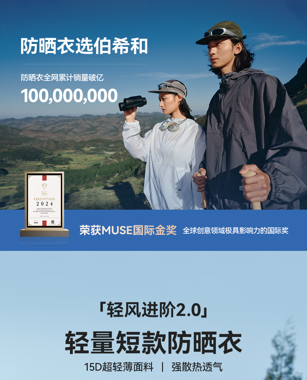 【轻风2.0】伯希和户外防晒衣女新款运动透气防晒服短款轻薄外套