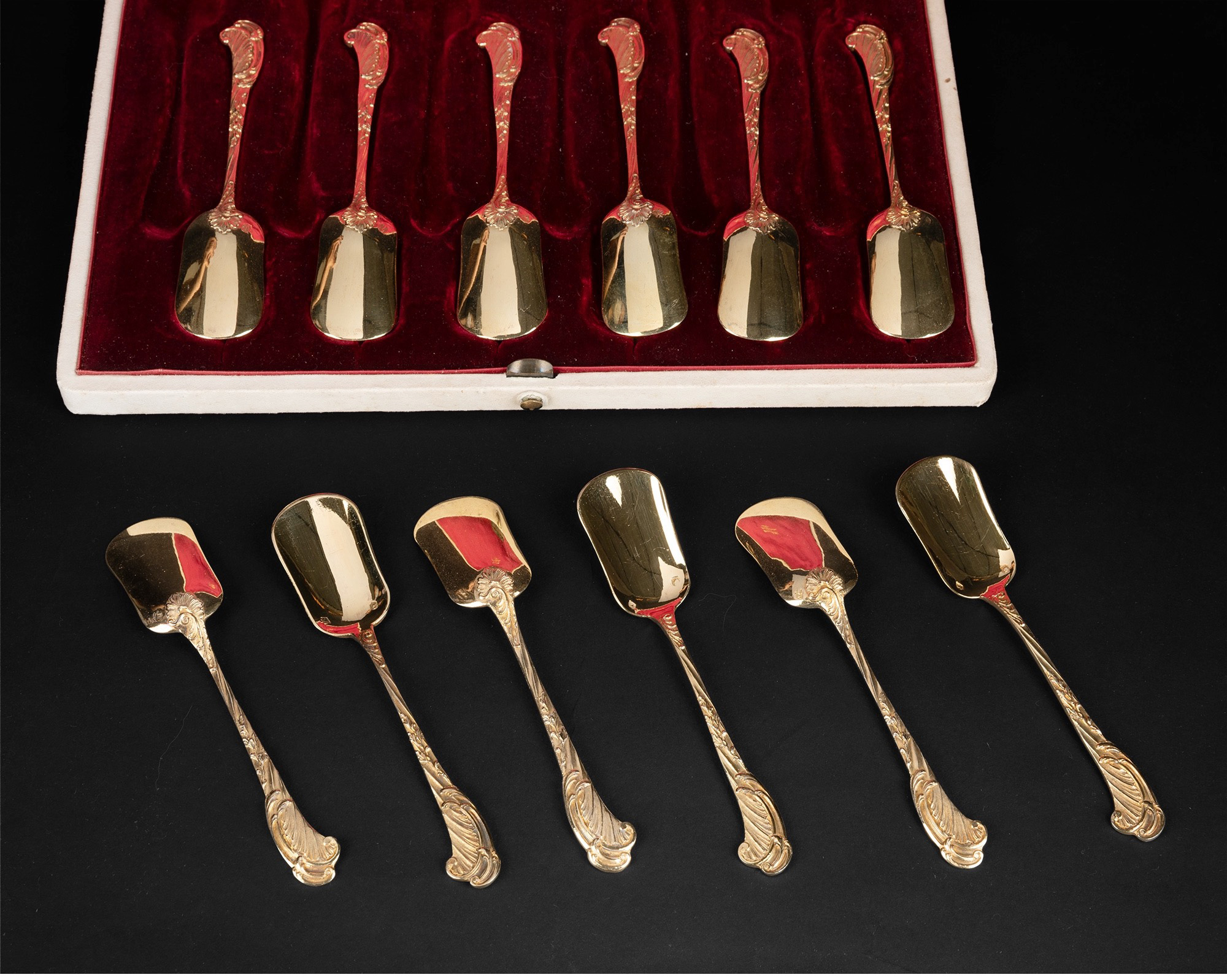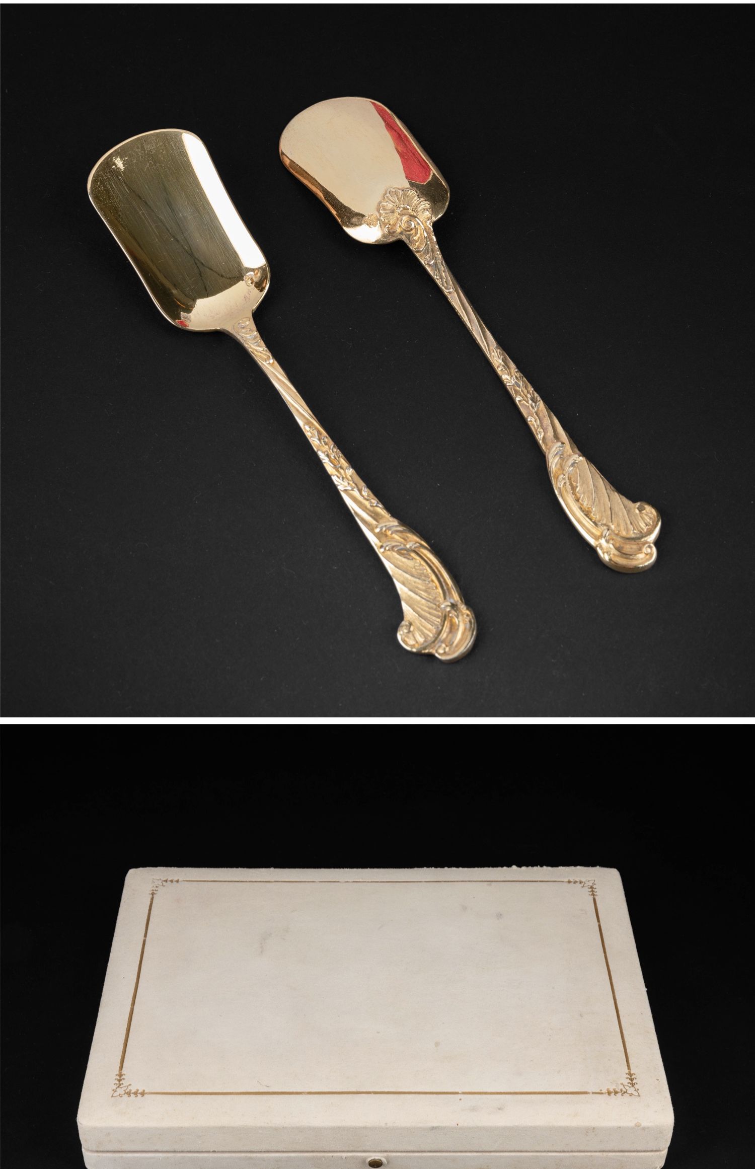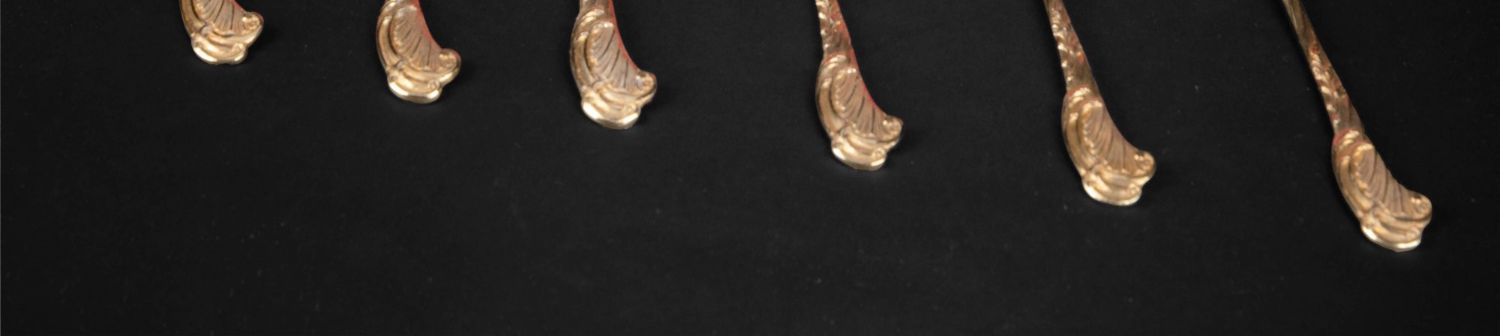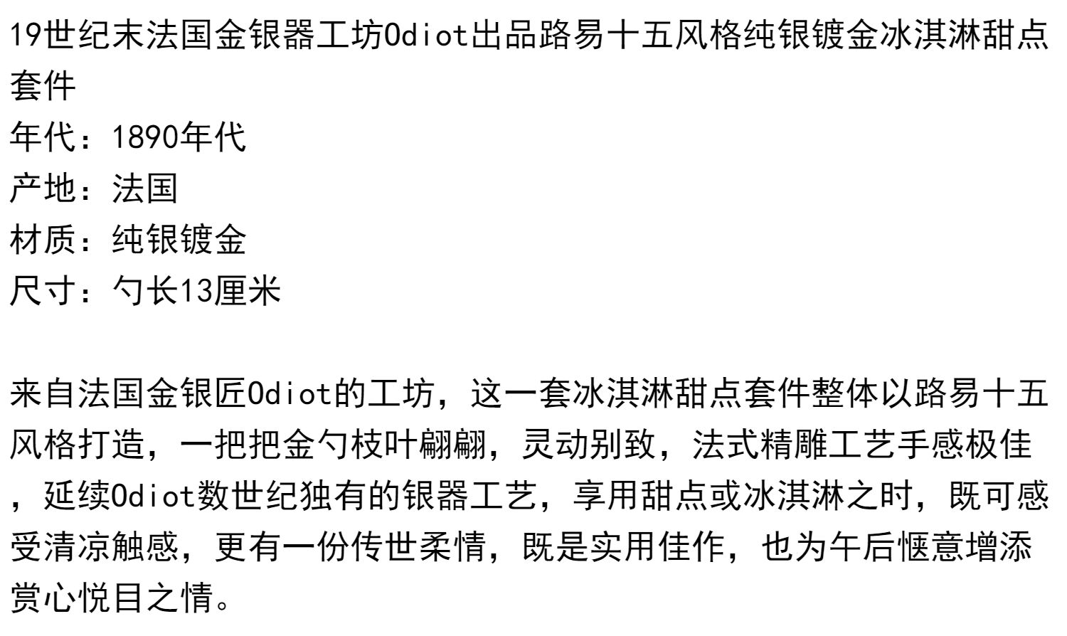 独角鹿西洋古董法国Odiot路易十五风纯银镀金汤匙勺子甜点套装