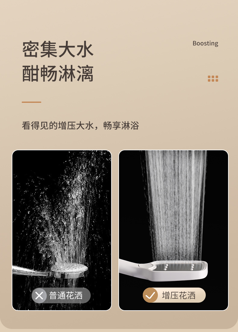 FaSoLa简约增压花洒喷头家用浴室洗澡手持淋浴头加压大出水淋蓬头