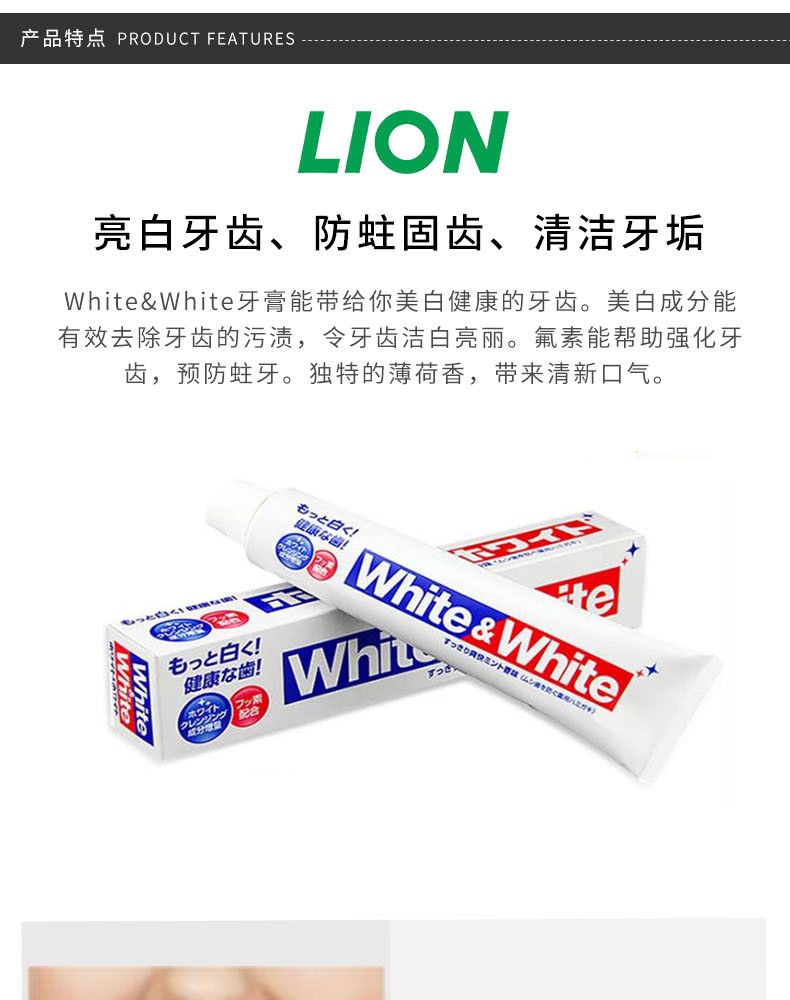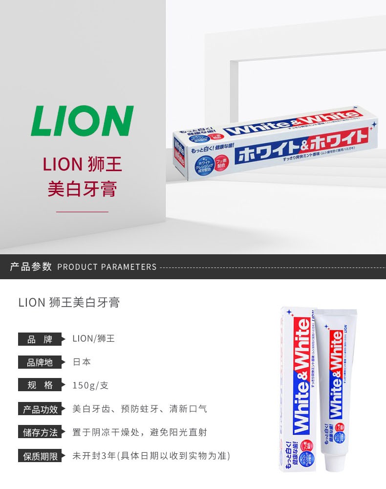 LION/狮王 WHITE&WHITE特效美白牙膏 150GJPY带授权招加盟代理