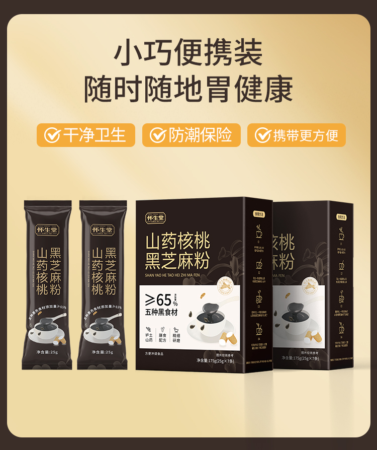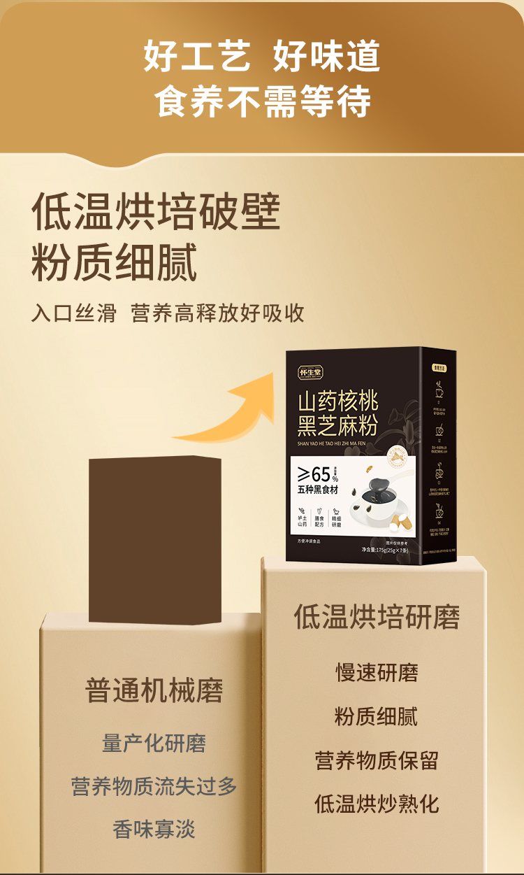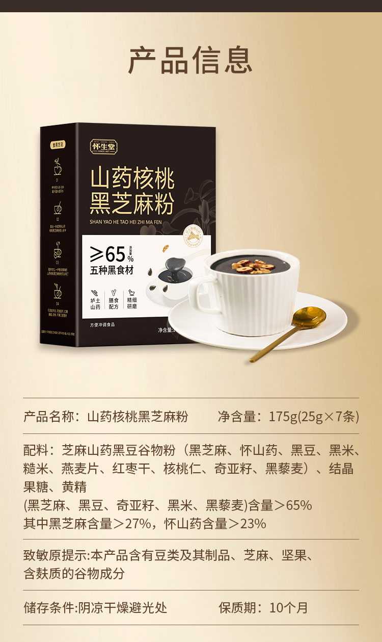 【怀生堂】山药核桃黑芝麻粉,特别添加垆土铁棍山药、黑芝麻等黑养食材添加量≥65%;每盒175g