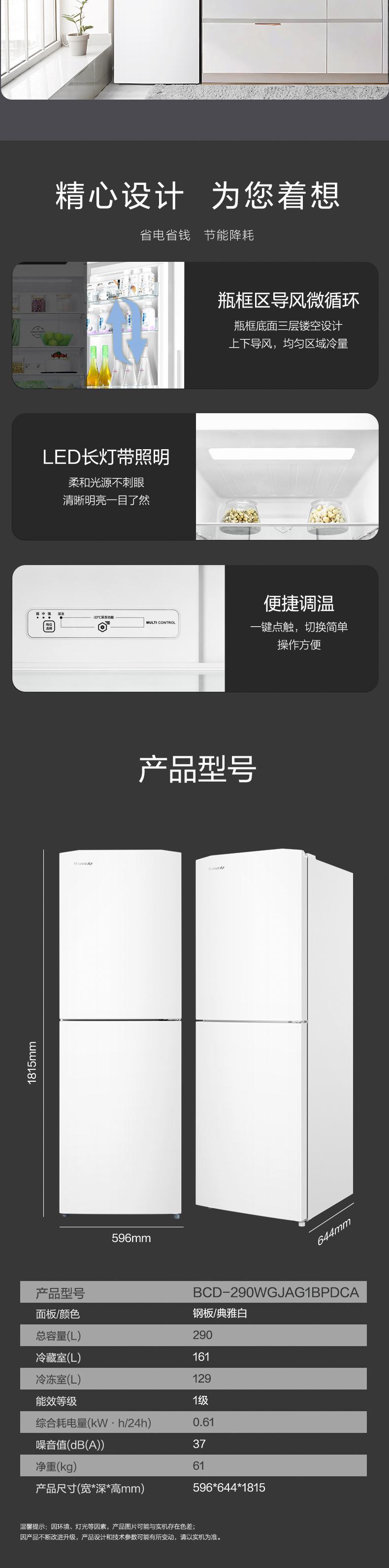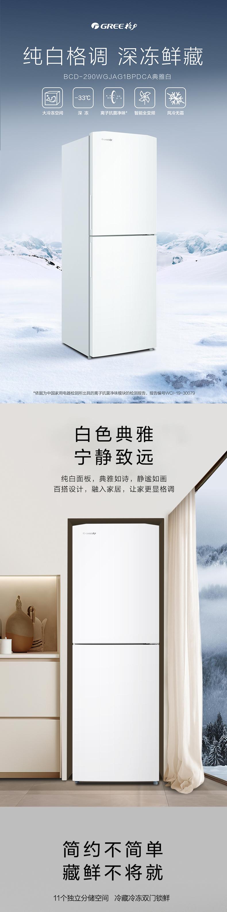 格力两门冰箱 290L 深冻储鲜 抗菌净味 BCD-290WGJAG1BPDCA/典雅白
