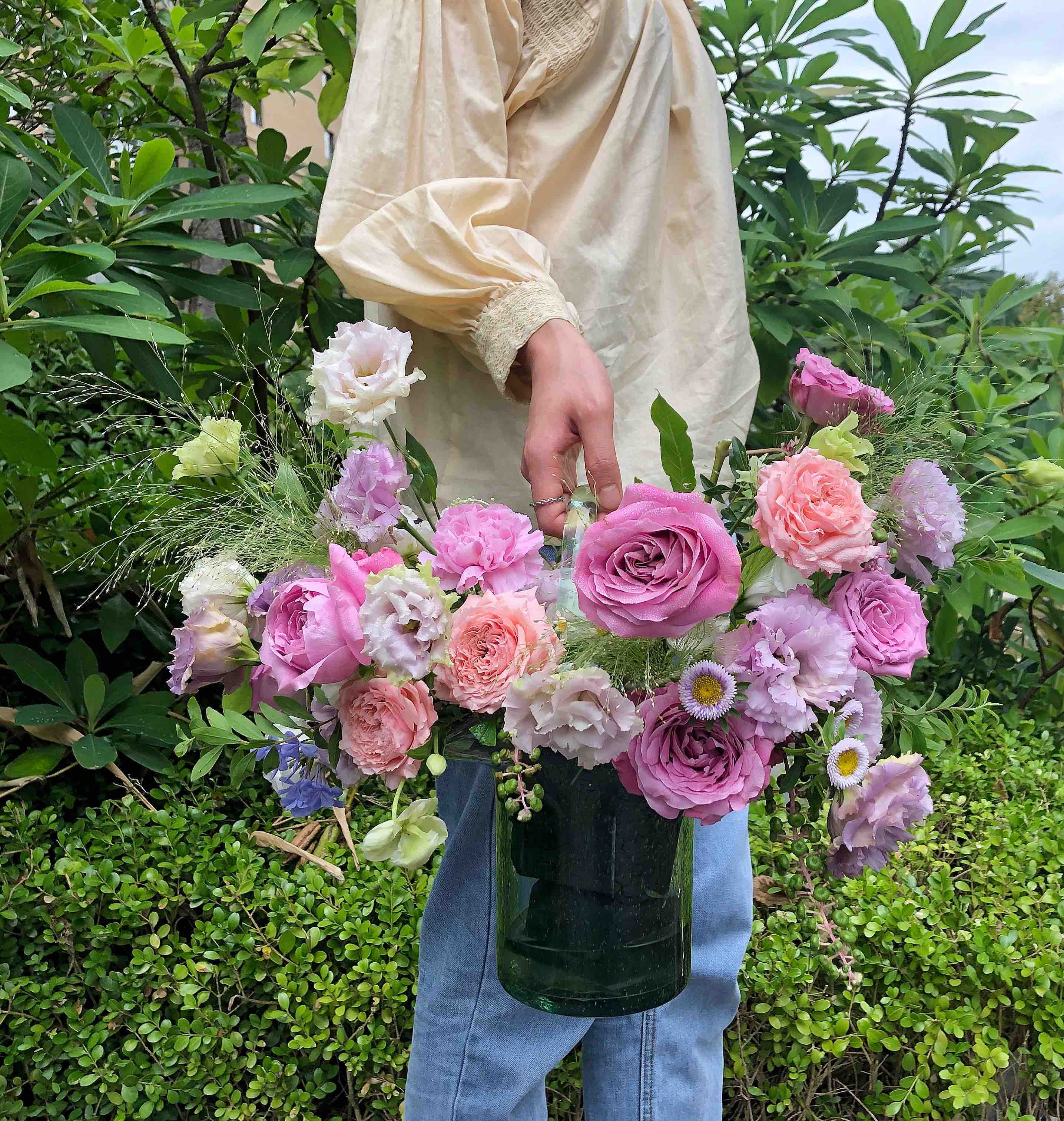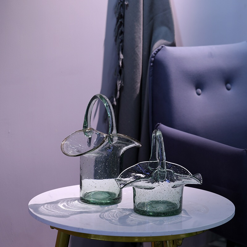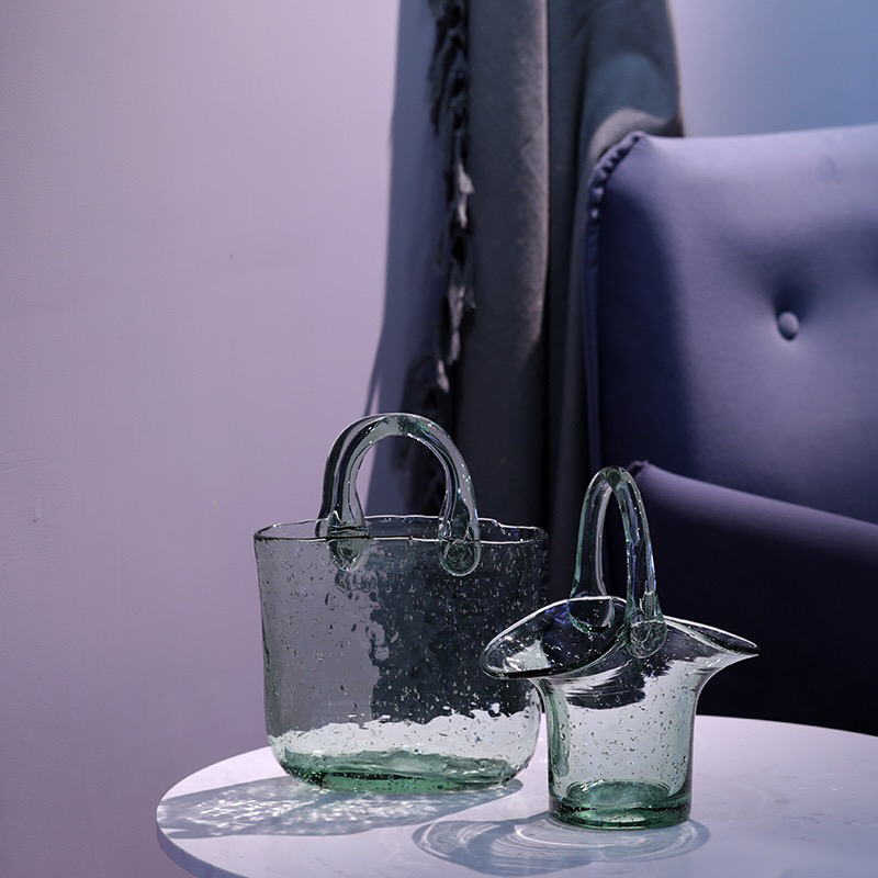 人工吹制气泡提篮造型花瓶【四件套】,2020下半年新款!