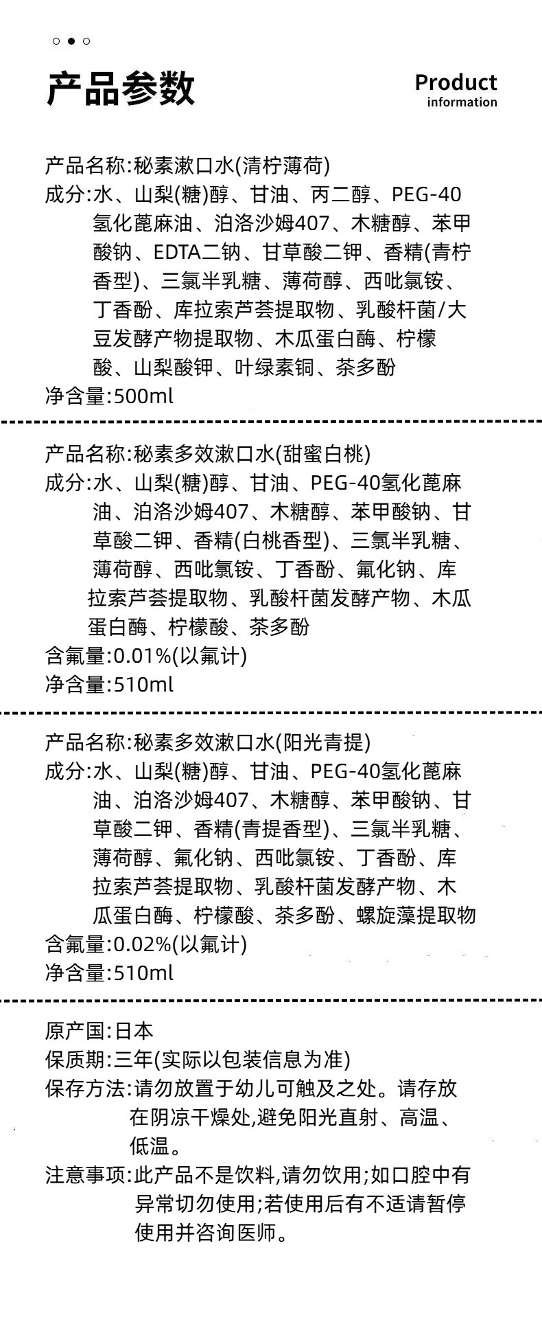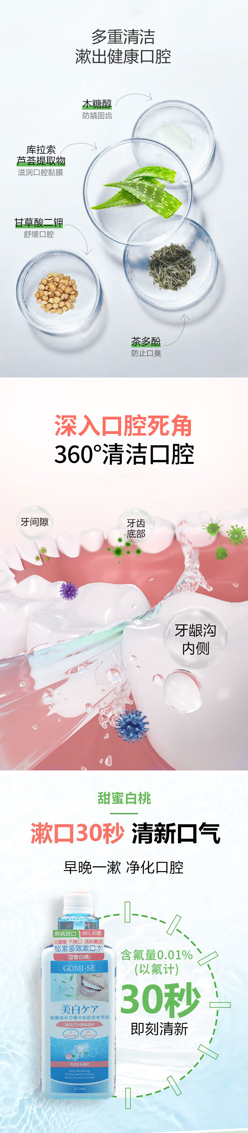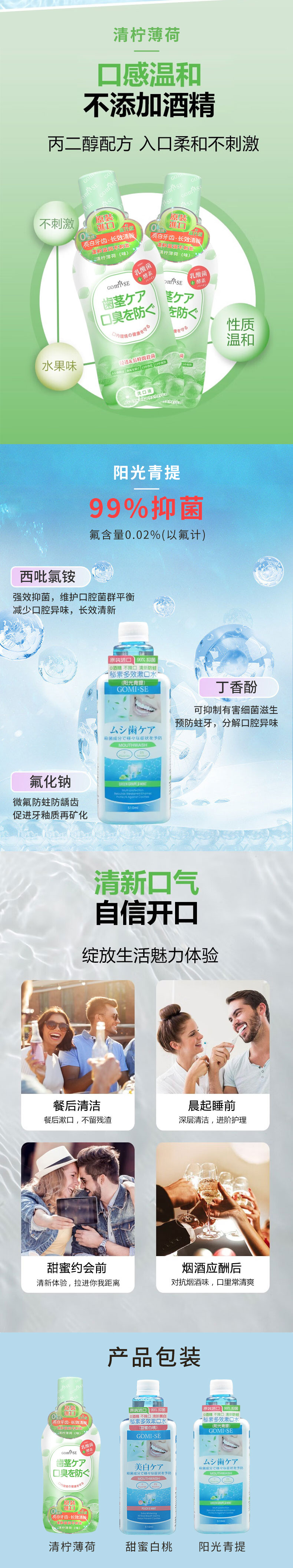 日本进口GOMI·SE秘素漱口水500-510ml/瓶【清柠薄荷丨甜蜜白桃|阳光青提】