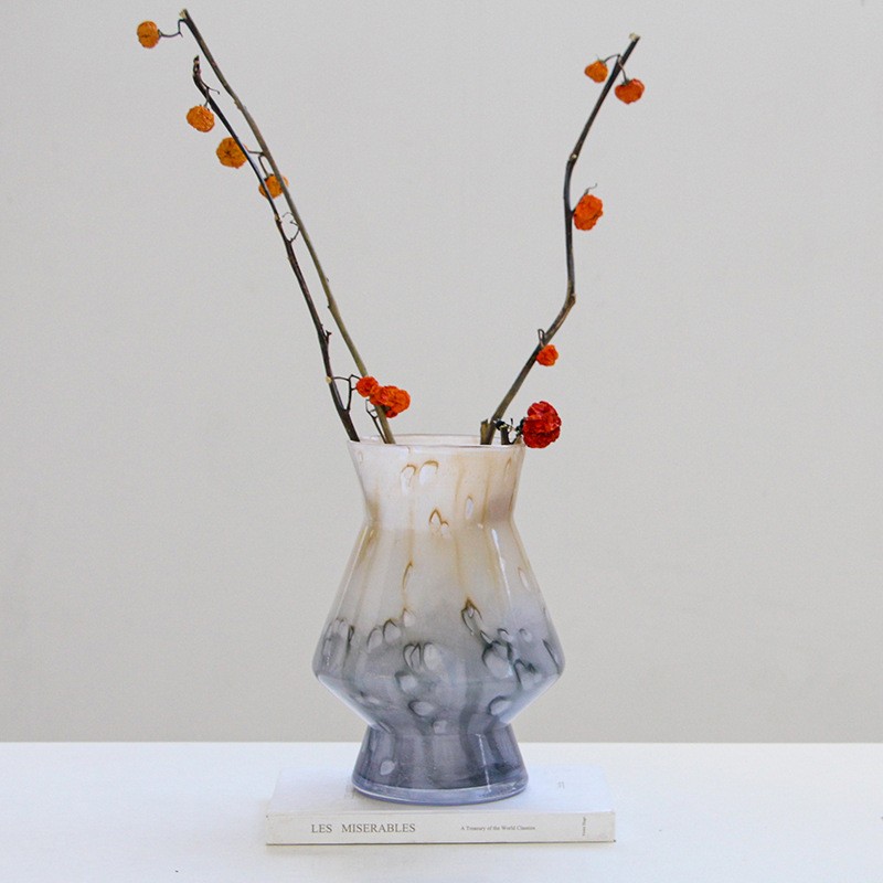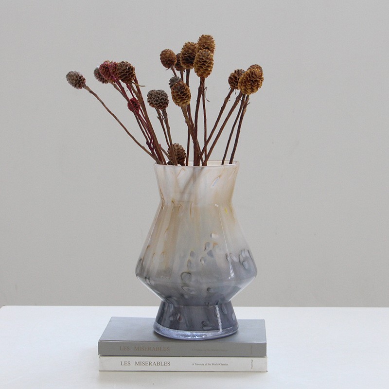 法式中古肌理不规则渐变玻璃插花瓶摆件家居客厅餐桌玄关创意装饰